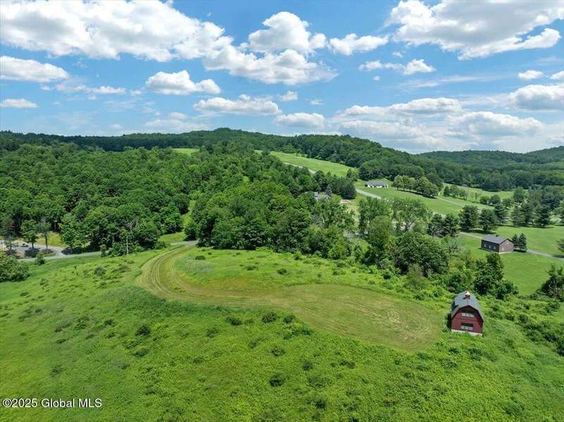 This elevated offering on 20.81 ares with a distant view of the Empire State Plaza is a perfect opportunity for creating an investment of one or more houses or as a private year-round residence. Surrounded by wooded hills and higher elevations of wooded views that provide a profusion of color throughout the year. The majority of an infrastructure has been installed, from an engineered driveway with culvert to a drilled well (10 gpm) and buried National Grid electrical service. A two-story barn was built in June 2014 and electric service in 2016. The stand alone barn is perfect for downsizing, an office, art studio, guest house or storage.