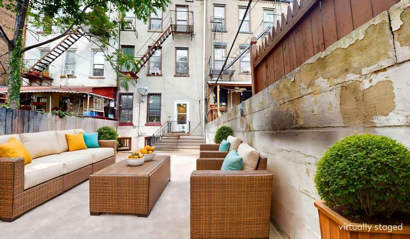 Floor through with yard and garden. ; Sunset Park beauty freshly renovated and painted this unit is sunny with open kitchen, breakfast bar facing your large living area. ;Home interior office. ; Smaller bedroom and larger primary bedroom.