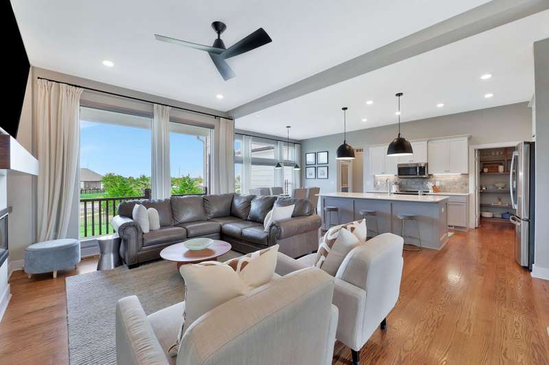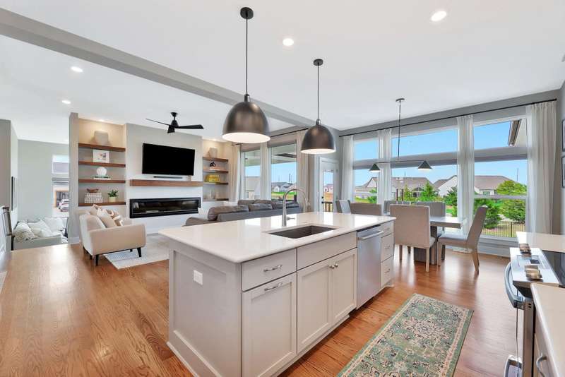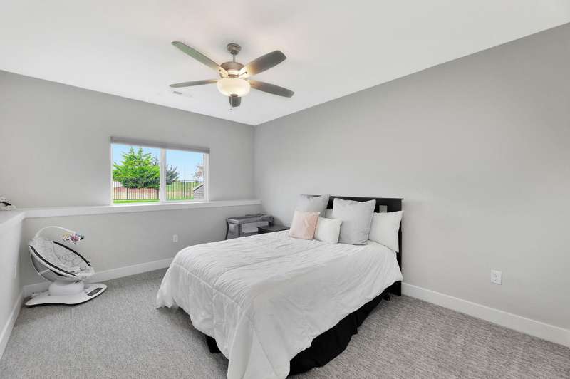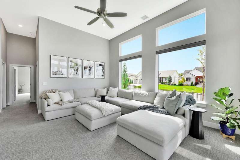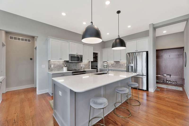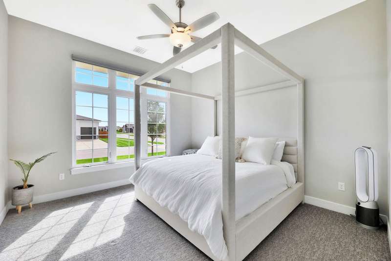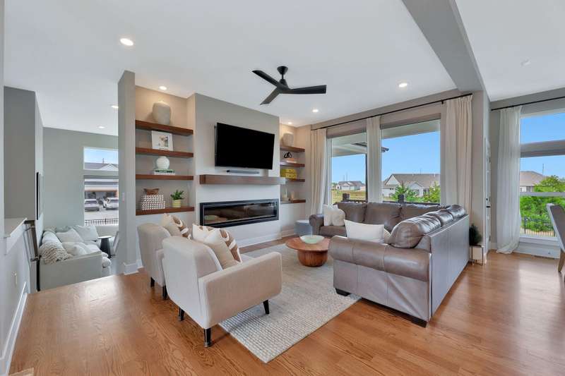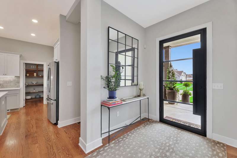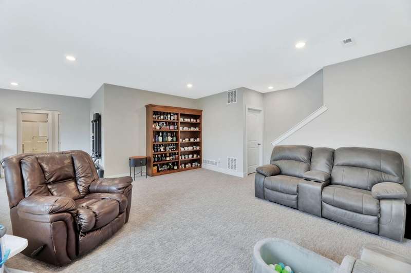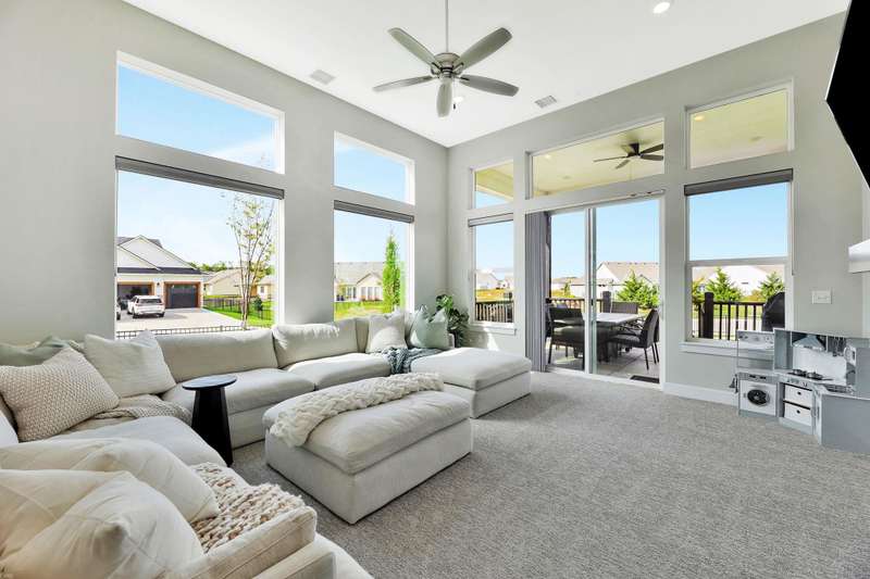 Impeccably maintained and beautifully designed, this custom-built 4 BR, 3.5 BA split ranch combines timeless style with thoughtful upgrades on a quiet corner cul-de-sac lot. Handsome curb appeal sets the tone with striking white paint, black-trimmed windows, professionally designed landscaping, and a sleek metal-and-glass front door. Interior upgrades include electric-controlled blackout shades, designer lighting over the kitchen island and dining area, soft-close cabinetry, sun-soaked living spaces and generous closets. Crisp paint, enamel trim, and attention-to-detail make every space feel fresh and bright. Two above-ground living areas offer comfortable flexibility for everyday living and entertaining. The kitchen features a large, inviting center island, a beautifully designed walk-in pantry open to the space, under-cabinet lighting, pull-out shelving in all lower cabinets, and a convenient drop zone just steps away. It opens to a welcoming living room featuring an electric fireplace flanked by built-ins. A second, light-filled family room showcases expansive windows and another electric fireplace, flowing seamlessly to a covered patioperfect for watching the sunrise or sunset, enjoying a summer storm, or dining al fresco. Steps below, an extended concrete patio and lush green lawn, maintained by a sprinkler system and irrigation well, provide a pleasant, open view, as the home does not back directly to other houses. The office offers flexibility as a non-conforming fifth bedroom, exercise space, or playroom. A convenient powder bath for guests and a laundry room that connects directly to the primary closet are also found above ground. The oversized second bedroom impresses with its exceptional closet and natural light. A view-out basement with nine-foot ceilings adds a third living area complete with a built-in bookcase, large cedar closet, two additional bedrooms, and a full bath. Additional highlights include a Lennox 16 SEER A/C, insulated and drywalled garage with epoxy floor, expanded patio, fenced yard, and wood shelving in all closets. Located in Circle Schools and close to shopping, dining, and highways, this home stands out for its immaculate condition, custom finishes, and beautifully maintained yard. Don't miss!
