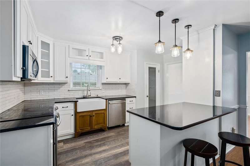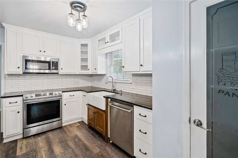 Remodeled kitchen and bathrooms; quartz counters; newer appliances; Large farmhouse kitchen sink; pretty back splash built in pull our spice rack; spacious utility room with cabinets; Above ground swimming pool with beautiful deck built in; 2 blinds throughout; smooth ceilings; HVAC system less than 7 years old. Buyer responsible for verifying all measurements and relevant details.