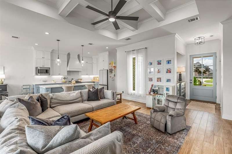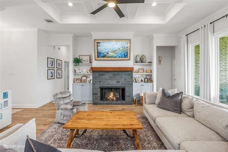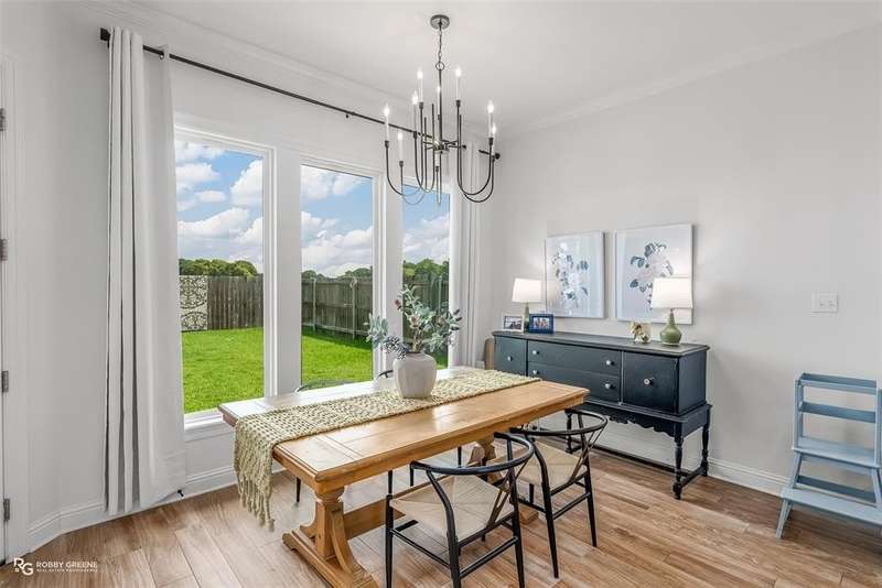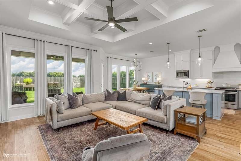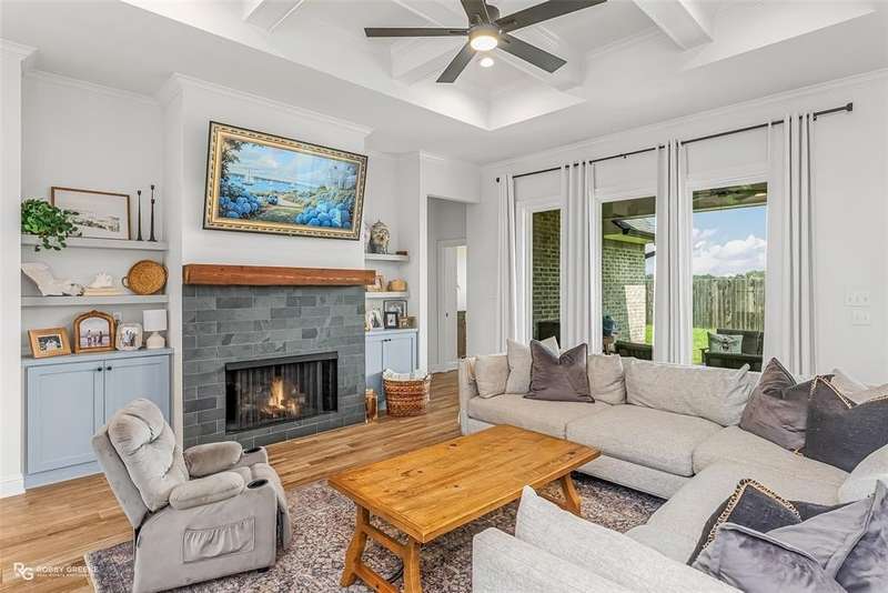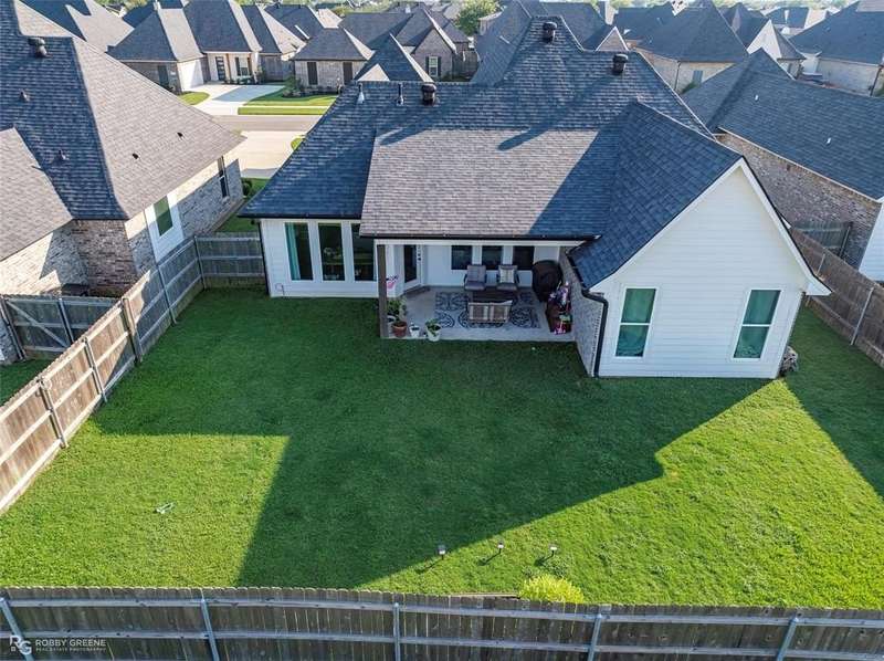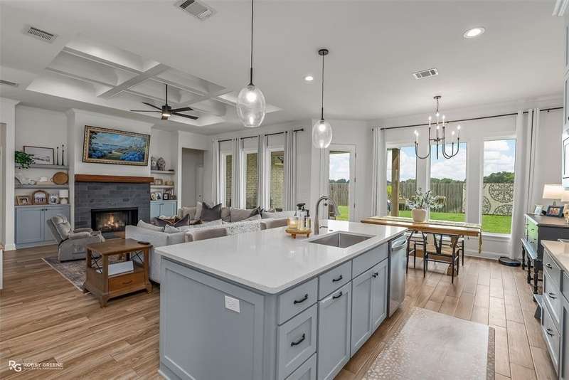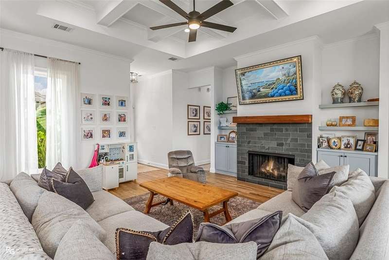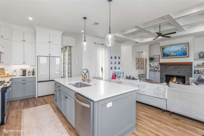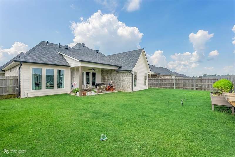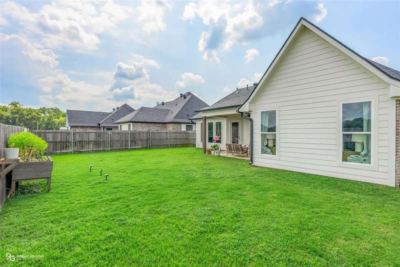 Welcome to 1361 Quincy Drive, a stunning 3 bedroom, 2 bathroom home built in 2021, this 1,855-square-foot residence blends modern design, timeless elegance, and meticulous attention to detail, offering a perfect balance of style and comfort. From the moment you arrive, the home’s striking curb appeal sets the tone. A crisp white brick exterior accented with soft gray shutters, architectural rooflines, and lush landscaping creates a welcoming first impression. Inside, natural light fills the open floor plan, highlighting a seamless flow between the living, dining, and kitchen areas. The living room features a coffered ceiling, large windows overlooking the backyard, and a fireplace with a sleek slate surround, offering both warmth and sophistication. The gourmet kitchen is a chef’s delight, boasting quartz countertops, an oversized island with seating, custom cabinetry in a soft blue tone, and designer pendant lighting. Stainless steel appliances and abundant storage make both cooking and entertaining effortless. The adjoining dining area opens directly to the covered back patio, ideal for indoor-outdoor gatherings. The private primary suite offers a serene retreat with vaulted ceilings and large windows framing backyard views. Its spa inspired bath features a freestanding soaking tub, an expansive walk-in shower with designer tile, dual vanities, and modern finishes. Two additional bedrooms and a full bath provide ample space for family or guests. Step outside to a spacious fenced backyard, perfect for pets, play, or relaxing evenings. The covered patio provides a shaded spot to unwind while enjoying the peaceful surroundings. Located in the highly sought-after Rosedale Place subdivision, a gated community with HOA amenities and convenient access to shopping, dining, and top schools, this home is the perfect blend of comfort, luxury, and location. Move in ready and beautifully maintained, this home is ready to welcome its next chapter. Call today for your showing!