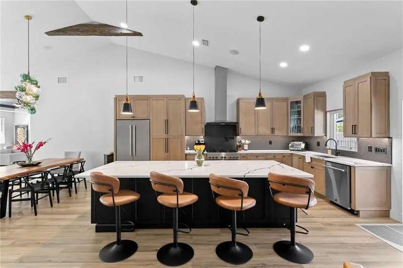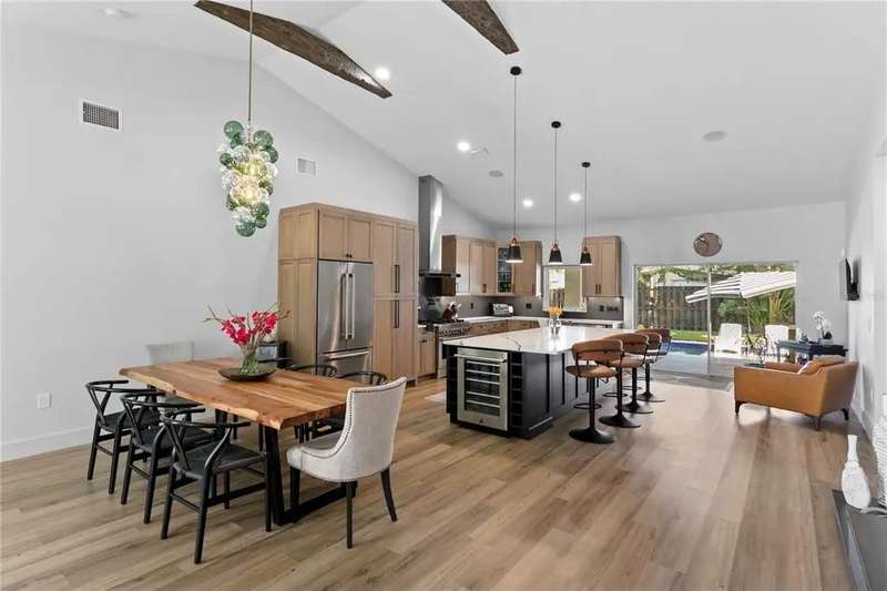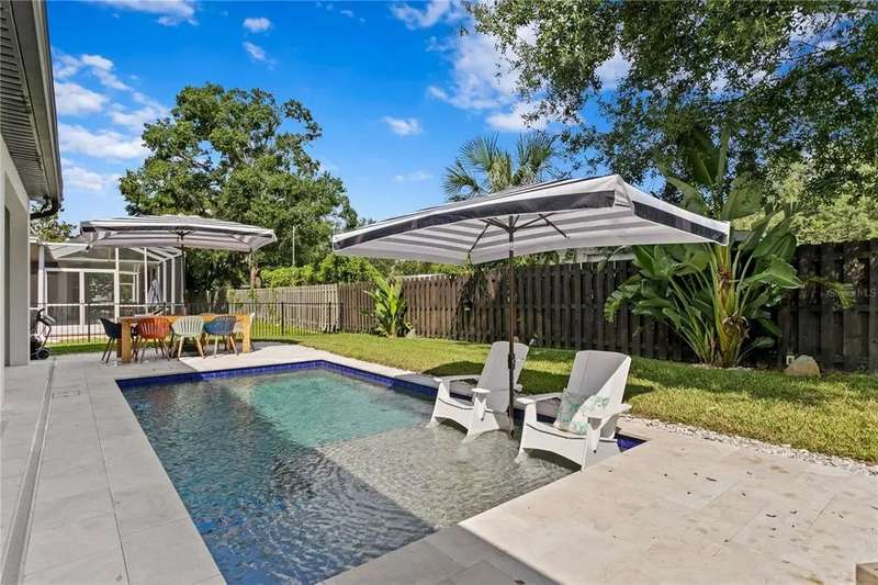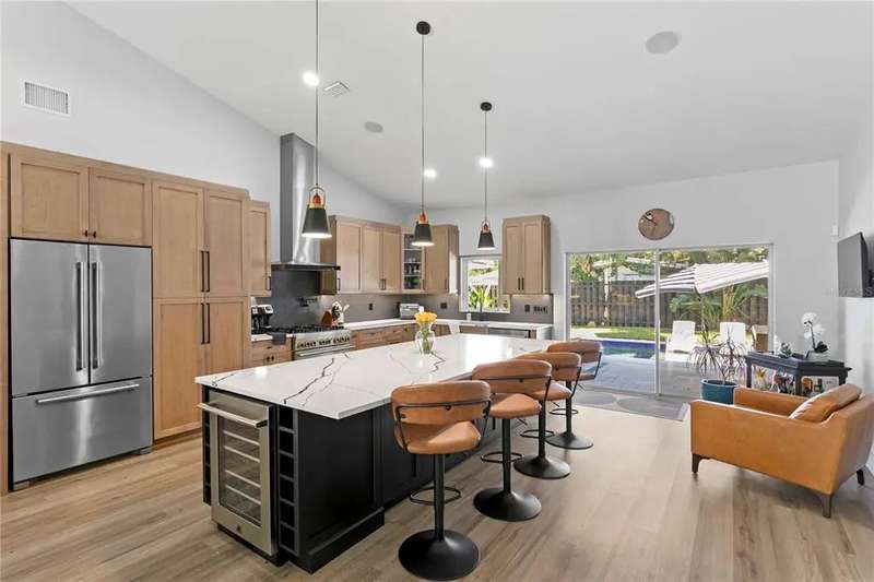 Beautiful multi-generational pool home in Greater Carrollwood! This 4 bedroom, 3.5 bath home has been thoughtfully reimagined and renovated through and through. The main portion of the home features a custom kitchen with solid wood cabinetry, quartz countertops, 6 burner gas range, pot filler, wine fridge, oversized island, and views to the sparking new pool! A built in fireplace warms the generously-sized family room. Just off the family room is a home office with French doors, a bright space that could also be used as a play room. The primary suite has two custom closets, and adjoining bath with double vanity, large walk in shower, and modern lighting and fixtures. Attached to the main home, is a studio apartment with 1 bedroom with living space,1 full bath, a galley kitchen, and separate rear entrance. The studio is also accessible from within the home, and is a flexible space for aging parents, or a teen/college age child living at home. Carroll Landing is a gated community in the Carrollwood area, with close proximity to Dale Mabry, I-275, and numerous private and charter schools such as Corbett Prep, Carrollwood Day School, Trinity School for Children, Jesuit, and Tampa Catholic High School. Available for move in January 15.