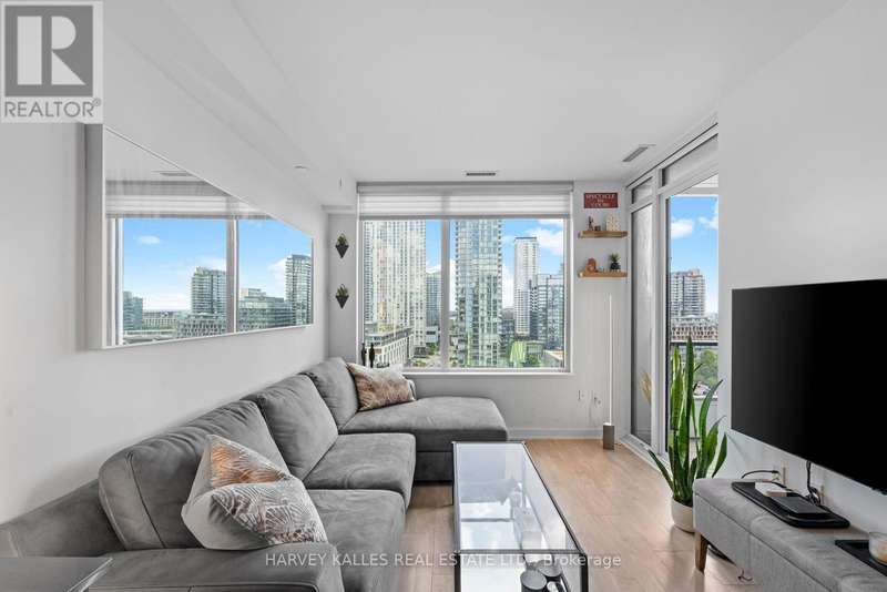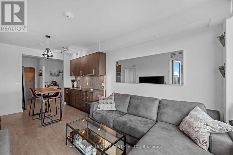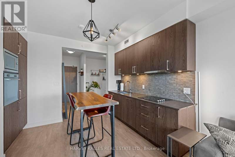 Experience the best of downtown living in this stylishly upgraded 1+Den suite (originally a 2-bedroom) and 2 bathroom at Minto Westside-one of Toronto's most vibrant and sought-after addresses. Offering 635 sq. ft. of intelligently designed space, this residence perfectly blends contemporary comfort with urban sophistication.The open-concept layout showcases hardwood flooring, floor-to-ceiling windows flooding the suite with natural light and offering bright south views. The sleek kitchen features integrated appliances, quartz countertops, modern cabinetry, and a spacious island, ideal for casual dining or entertaining.The primary bedroom provides a tranquil retreat spa-inspired 4-piece bath, ample storage, while the versatile den functions beautifully as a home office, guest room, or can easily be converted back into a second bedroom to suit your lifestyle needs. A second 3-piece bathroom, in-suite laundry, and private balcony complete the suite's thoughtfully curated design. Included is a locker for added convenience.Residents enjoy access to world-class amenities, including:Rooftop pool and sundeck with BBQs and panoramic city viewsFully equipped fitness centre and yoga studioElegant party and meeting rooms24-hour concierge and security. Located in the heart of King West, steps from The Well, Farm Boy, LCBO, transit, and Toronto's best dining, shopping, and entertainment, this suite offers the perfect balance of luxury and lifestyle-ideal for executive tenants or young professionals seeking a dynamic urban address. Tenant pays for hydro and water (Provident)(Parking available at an additional cost) (id:6370)