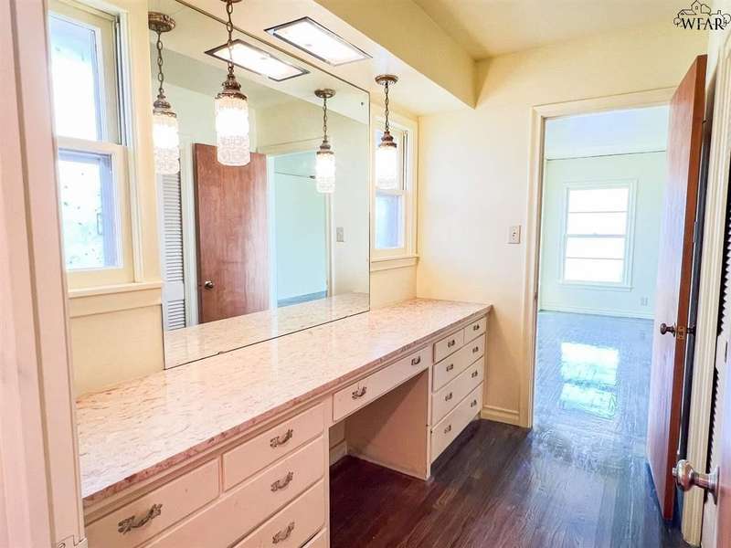Stately home just 1/2 block from ACISD. Spacious throughout this home provides a formal living room and dining room with great natural light from pane windows. The large kitchen with metal cabinets, walk-in pantry and desk area leave plenty of room for your dream kitchen. The inviting family room has wood beams, wood paneling and a fireplace w large windows overlooking the patio. A hall bath connects to the primary suite. A Jack & Jill bath serves the front 2 bedrooms. Conditioned storage leads to garage.