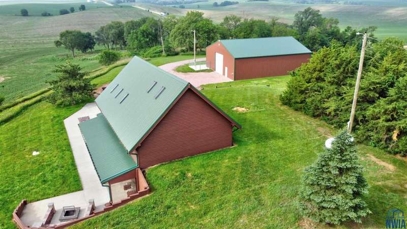 Looking for a little extra space to stretch out and enjoy the outdoors? This scenic 4-acre property offers peace, privacy, and stunning views of the surrounding hills and motivated sellers ? all just off Hwy 20 and a short drive from Sioux City, IA. Step into a bright and spacious great room with vaulted ceilings, perfect for relaxing or entertaining. The home features four bedrooms, with the primary suite tucked away in its own airy loft retreat. Need extra space for hobbies, storage, or projects? Youll love the nearly new 50 x 60 x 14 Cleary-built pole barn ? complete with its own septic & plumbing for a future bathroom and kitchen or bar setup, and an attached indoor/outdoor concrete dog run. Step outside to a covered lower patio or head up to the raised patio above the garage ? both great spots to soak in the view. Enjoy evenings around the custom-built fire pit, and rest easy knowing the exterior has been freshly painted. The home includes bathrooms on every level, propane heat, central air, and an attached 2-car garage. Mature trees provide natural wind protection, making this the perfect place to enjoy every season.