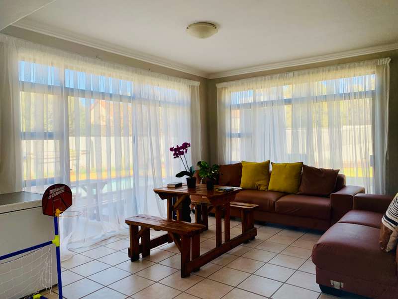 Nestled in the estate of Leloko, this exquisite 4-bedroom home offers a perfect blend of luxury and comfort. As you step inside, you're greeted by spacious living areas, that flow seamlessly into the kitchen with ample storage. The property boasts four generously sized bedrooms, each filled with natural light and designed with contemporary finishes. The master suite is a true retreat, featuring a walk-in closet and an elegant en-suite bathroom. The outdoor space is where this home truly shines. The beautiful backyard is a private oasis, perfect for both relaxation and entertainment. A sparkling swimming pool invites you to cool off on warm days, while the adjacent covered entertainment area is ideal for hosting gatherings with friends and family. Whether you're enjoying a braai, lounging by the pool, or simply soaking in the serene surroundings, this backyard is designed for enjoyment. Additional features include a garage, a spacious driveway, and easy access to the estate's amenities. With its picturesque setting and thoughtfully designed spaces. This Leloko property is more than just a home—it's a lifestyle....!!!!! CONTACT ME FOR A VIEWING APPOINTMENT.....!!!!!!