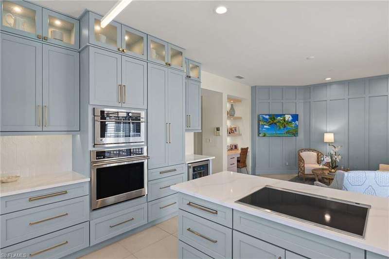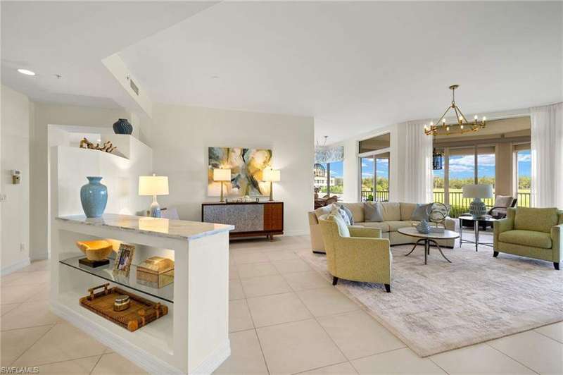 Welcome to 1560 Star Point Lane in the highly coveted enclave of Admirals Watch of Windstar on Naples Bay. Enter the lobby of this 4-unit boutique building to the elevator which opens directly into your 3 Bedroom, 3.5 Bathroom tastefully updated home in over 2600 square feet of living space under AC. Open-concept living area with walls of glass affording stunningly gorgeous western views of golf course, Naples Bay, Port Royal, Royal Harbor and sunsets. Sprawling living room with linear fireplace opens out to screened-in lanai with expansive views seamlessly blending indoor/outdoor living. A true chef's eat-in kitchen replete with shaker cabinetry, contemporary white quartz countertops, GE Monogram appliances, breakfast bar, dining area plus a sitting room with custom millwork accent wall and built-in desk area. Master Suite oasis featuring large bedroom with wall of glass overlooking the bay, dual walk-in closets with custom built-ins plus an en-suite bathroom with walk-in shower, soaking tub, dual vanities and separate water closet. Split floor plan with 2 additional guest suites each with en-suite bathrooms and views of the preserve. Full size laundry room plus a convenient powder room. Oversized 2-car garage. Gorgeous resort-style pool and spa. Deeded boat slip #7 behind the building which can accommodate up to a 30 foot boat and is just a mere 7 minutes out to the Gulf of Mexico. Windstar on Naples Bay is the only gated golf community with Tom Fazio designed 18-hole golf course that offers direct bay access, a private beach plus dock on Keewaydin Island with boat shuttle plus a full service 73-slip deep water marina. Newly renovated clubhouse (separate membership) with multiple dining areas with stunning views of Naples Bay and Port Royal, billiards room, 6 Har-Tru tennis courts, bocce courts and a state of the art fitness center slated for 2026 completion. Preferred location just a short drive via car, bike or golf cart to downtown's 5th Avenue known worldwide for its fine dining, shopping and beaches. Situated in the vibrant Bayshore Arts District, Windstar is walkable to Naples Botanical Garden and Naples Pickleball Center home of the pickleball US Open. Easy access to I-75, Naples and Fort Myers airports. This truly exceptional home has been thoughtfully updated with modern features perfect for today's paradise living. If you are looking to buy the quintessential, resort style low-maintenance home in Naples look no further!