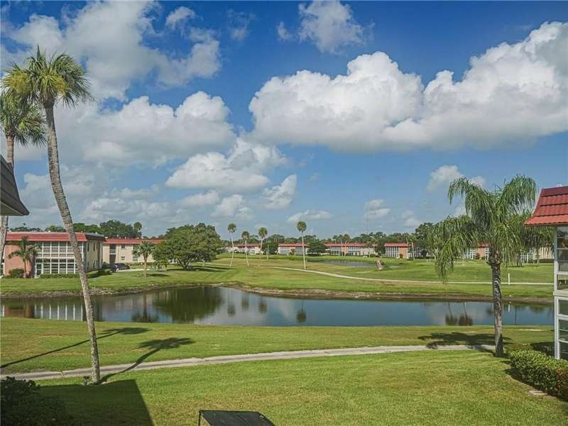 Enjoy the best of 55+ living in this beautifully maintained 1 bed+1.5 bath condo w/stunning golf course& lake views! Features include: 2024 AC, 2023 roof, 2023 water heater, lux vinyl flooring, updated kitchen & baths, plantation shutters, in-unit washer & more! Move-in ready w/all furnishings included. This condo offers a perfect blend of comfort, convenience, & luxury in a desirable community. Low condo fees include water, trash, sewer, cable, internet, exterior maintenance, master insurance, access to resort-like amenities, on-site manager, & much much more! All assessments paid in full!