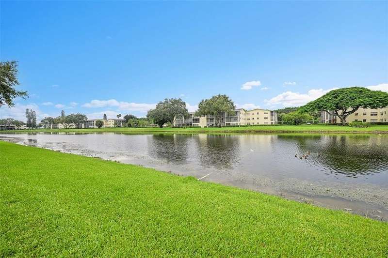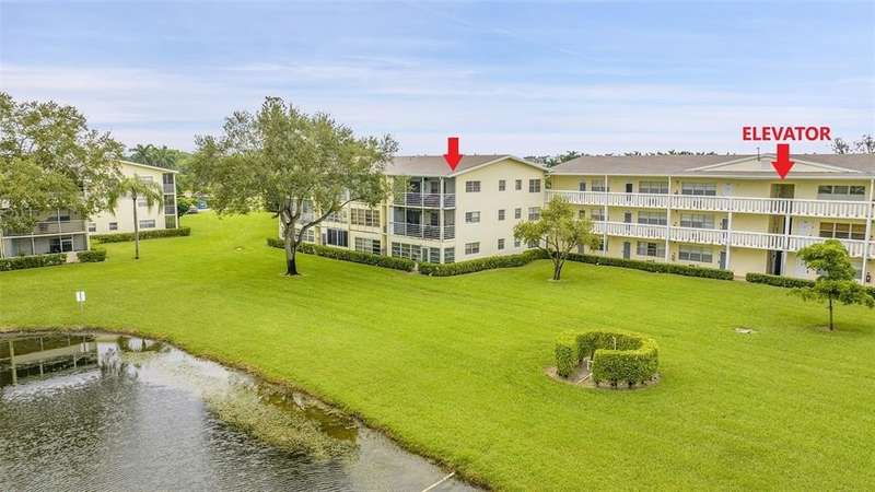 AMAZING Waterfront Views from this Corner Unit with Extra Windows on 3rd Floor (ELEVATOR). Waterfront Screened Balcony which also includes Oversized Outside Storage Closet & Unit is Being Sold Furnished. Renovated Kitchen & Half Bathroom, Water Filtration System in the Kitchen Sink, LED High Hat Lighting, Garbage Disposal, Main Bathroom has Tub & Shower Combo with Glass Enclosure, A Frosted Window & Handrails, Both Bedroom Closets have Built-In Cabinetry, AC was installed 2022, Updated Electrical Panel. Amazing Community! Century Village Features a Courtesy Bus, Clubhouse, Theater, 2 Synagogues, 17 Outdoor & 1 Indoor Swimming Pools, 12 Tennis & Pickleball Courts, Bocce, Shuffleboard, Fishing, Cable, Internet & much more. You Will Love Where You Live, Work & Play! WELCOME HOME!