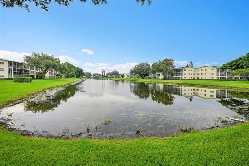 AMAZING Waterfront Views from this Corner Unit with Extra Windows on 3rd Floor (ELEVATOR). Waterfront Screened Balcony which also includes Oversized Outside Storage Closet & Unit is Being Sold Furnished. Renovated Kitchen & Half Bathroom, Water Filtration System in the Kitchen Sink, LED High Hat Lighting, Garbage Disposal, Main Bathroom has Tub & Shower Combo with Glass Enclosure, A Frosted Window & Handrails, Both Bedroom Closets have Built-In Cabinetry, AC was installed 2022, Updated Electrical Panel. Amazing Community! Active 55+ Century Village Features a Courtesy Bus, Clubhouse, Theater, 2 Synagogues, 17 Outdoor & 1 Indoor Swimming Pools, 12 Tennis & Pickleball Courts, Bocce, Shuffleboard, Fishing, Cable, Internet & much more. You Will Love Where You Live, Work & Play! WELCOME HOME!