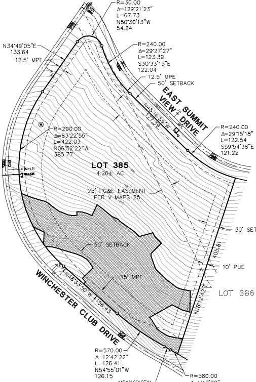 Corner Location & Valley Views - This 4.26-acre corner lot presents an exceptional opportunity to craft a private estate with both elegance and ease. Gently sloping to capture sweeping valley views, the land is framed by mature trees that provide a serene, natural backdrop, creating a sense of retreat without sacrificing convenience. Perfectly positioned with seamless access to the main road, the homesite offers the ideal balance of tranquility and connectivity. This expansive corner lot presents an exceptional opportunity to craft a private estate with both elegance and ease. With its impressive size, Lot 385 offers ample room not only for a custom luxury residence but also the possibility of adding an ADU, guesthouse, or multi-generational living space. Perfectly positioned with seamless access to the main road, the homesite strikes the ideal balance of tranquility, versatility, and connectivity.