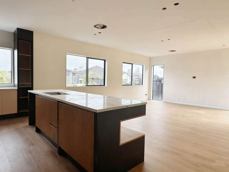 If you're looking for an affordable 5-bedroom brick house in one of Auckland’s most beautiful new suburbs, this is the one for you! With an expected completion in mid-November 2025, you could be moving in before Christmas! This modern-designed family home features open-plan living where natural light flows through, boasting all-day sun. The layout offers: • Five bedrooms and three bathrooms. • A fantastic income or extended family potential with a dedicated wing that includes two bedrooms, its own bathroom, living room, and separate decking and entrance—perfect for accommodating a granny, extended family, or flatmates. • The main lounge and master bedroom both feature wide sliders that lead out to a large, private deck—the perfect space to entertain family and friends. • A generous flat section of approximately 400m² with a beautifully landscaped garden. High-Quality Finishes & Superior Features Built with low-maintenance, high-quality materials (brick and weatherboard), this home comes with a 10-Year Master Builder Guarantee for peace of mind. Premium Features Include: • 2.7m high ceiling throughout. • A gourmet kitchen with modern engineered countertops, Bosch appliances, and a double oven. • Internal access garage, plus extra off-street parking. • Central air conditioning unit. • Central vacuum system. • Security and tech ready: CCTV system, security alarm, and fibre connection ready. Unbeatable Location & Convenience The superb location offers unparalleled convenience, with everything you need right on your doorstep: • Literally meters away from the reserve and the future shopping centre (currently under construction). • Walking distance to the newly opened kindergarten and Primary School. • In zone for the highly regarded Orewa College. • A short drive to the motorway via the new Pine Valley Road, Park & Ride, and Silverdale Shopping Centre. Act now before this exceptional opportunity is gone!