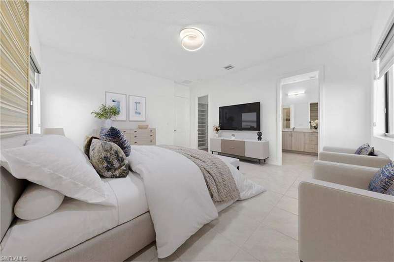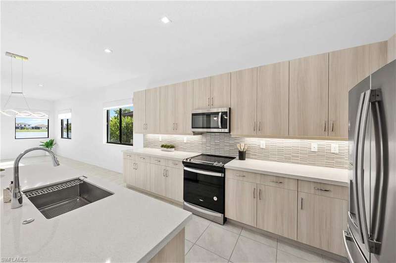 Step into a home with a 5.2% ASSUMABLE MORTGAGE RATE and save BIG!!! Welcome to where chic sophistication meets Florida charm in Maple Ridge of Ave Maria! This stunning 3 bedroom plus den and 2 and a half bath single-family nearly 2,300 Sq. Ft. of living space home, boasts gorgeous tile flooring throughout and is light and bright with tons of natural light. Greetings from the foyer will lead you to the den with elegant French doors to the left and straight to the kitchen and living area. The chef's kitchen will leave the most discerning chefs pleased with its center island, quartz counters, stainless steel appliances, disposal, and plentiful cabinet and counter space. Flanked by the kitchen, the dining room and living area is oversized with access to the enclosed lanai with beautifully idyllic lake views. The primary bedroom is a true retreat with your double vanity, water closet, gorgeous walk-in shower, and large walk-in California closet. Outside, build the pool of your vision! The 2 remaining guest bedrooms enjoy a shared full bathroom with water closet and double vanity as well. Peace of mind is enhanced with an additional powder room, laundry in residence with laundry tub, 2 car garage, and close proximity to not only the clubhouse but Downtown Ave Maria with shopping and dining at your disposal!
