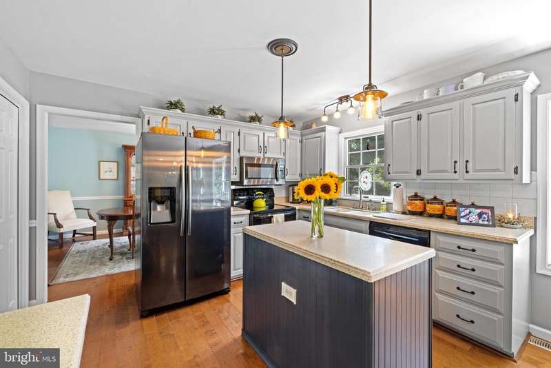 Welcome to this well-maintained 4-bedroom, 2.5-bath home tucked near a quiet cul-de-sac in Bridgewaters Windsor Estates. Located in the sought-after Turner Ashby school district, this home offers a perfect blend of comfort and function. Enjoy hardwood floors on the main level, a cozy living room with a wood-burning fireplace, formal dining, and a bright kitchen with white cabinetry, Corian countertops, and an island overlooking the backyard. Upstairs, all four bedrooms have generous closets, including a primary suite with two closets and a beautifully updated bath. The second full bath has also been tastefully renovated. Step outside to a private composite deck, mature landscaping, and a peaceful, park-like backyardideal for relaxing or entertaining. The walk-out basement includes 600 square feet of finished rec space, a roughed-in half bath, and an additional 830 square feet of storage/workshop space. Additional highlights: double garage, backup wood furnace, and extensive paved parking. A wonderful home in a great locationcome see it for yourself!