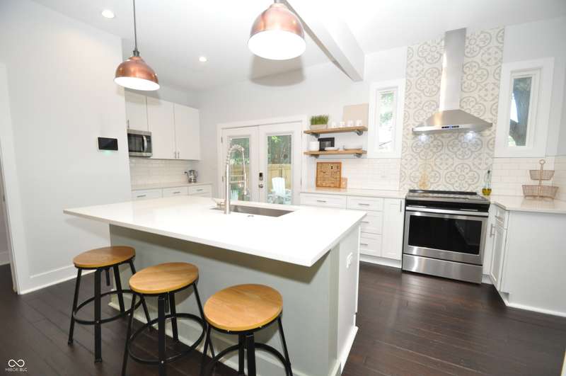 Fountain Square at its best inside and out of this 3 Bedroom 3 1/2 bath charmer! Much larger than it looks with over 2,300 Sq. Ft. on the main & upper levels, and larger than most of the competition. The wonderful gourmet kitchen has numerous cabinets, plenty of quartz countertops, upgraded appliances, center island with breakfast bar, Stainless steel appliances and a coffee bar. It opens to the 15 x 14 Dining Room and 20 x 15 Living Room. The main floor is accented by the hardwood floors, bay window, spindled staircase, turn key light fixtures, and sharp crown moldings and woodwork. You will enjoy the spacious Primary Suite that includes a bathroom with double sink vanity and a large shower with dual shower heads, as well as a California Closet type closet. All three bedrooms have their own separate full baths with tile floor and tile shower and tub surrounds. No fiberglass inserts! The upper-level laundry room is also a great feature. Enjoy the beautiful, landscaped yard from the rear wood deck or covered front porch. Other pluses are the garage, storage space in the basement, the two HVAC systems for comfortable heating and cooling. This home was taken down to the studs, reconfigured and added onto with quality craftsmanship and features. Year built noted is per the assessor's office. Enjoy a short walk to your favorite restaurants and places of entertainment in popular Fountain Square!