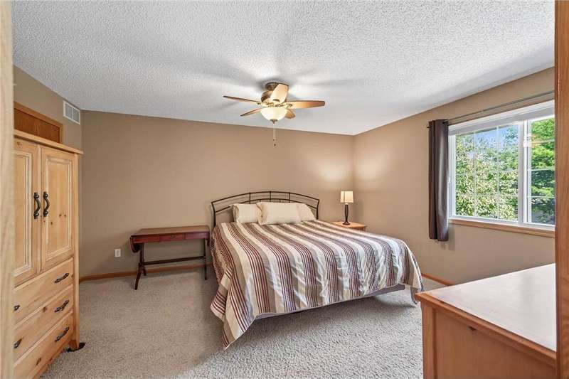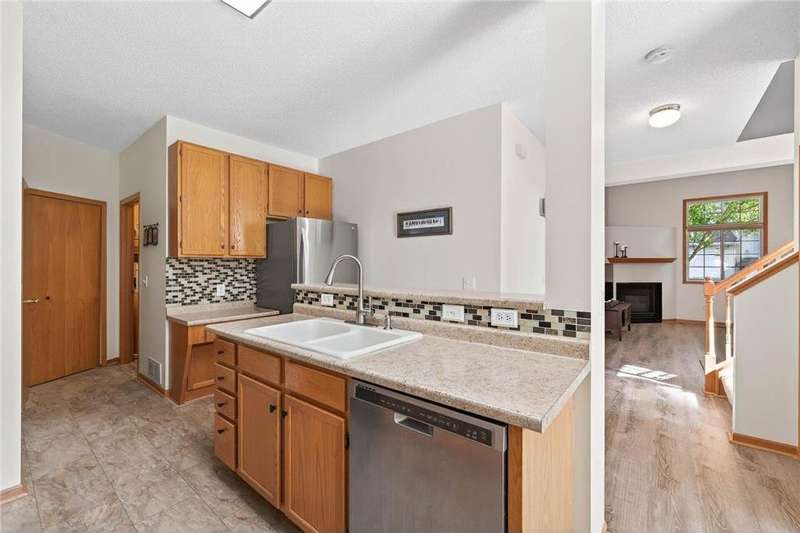 Welcome to this charming move-in ready end-unit townhome in a prime Eagan location! This 2-bedroom, 2-bath home features a bright and open layout with a cozy gas fireplace in the main level living room. The dining area walks out to a private patio overlooking beautiful green space, perfect for relaxing or entertaining. The upper level offers two spacious bedrooms including the primary with walkthrough full bathroom and walk-in closet. Enjoy a versatile loft space, ideal for a home office, media room, or flex space. 2-car garage and the ease of townhome living. Located just minutes from shopping, restaurants, and more, this home offers the perfect blend of comfort and convenience!