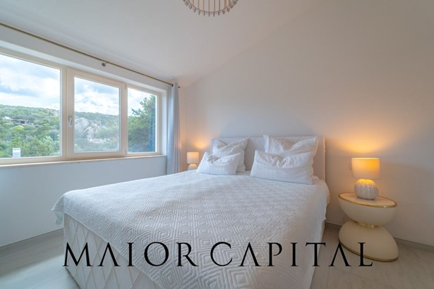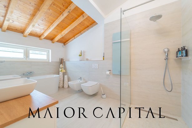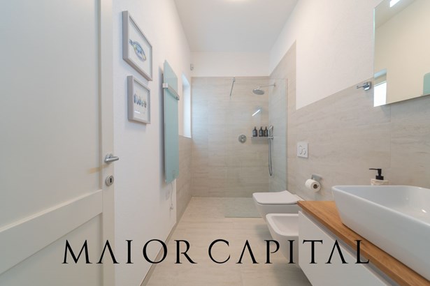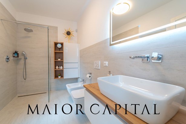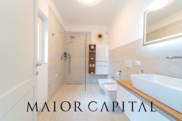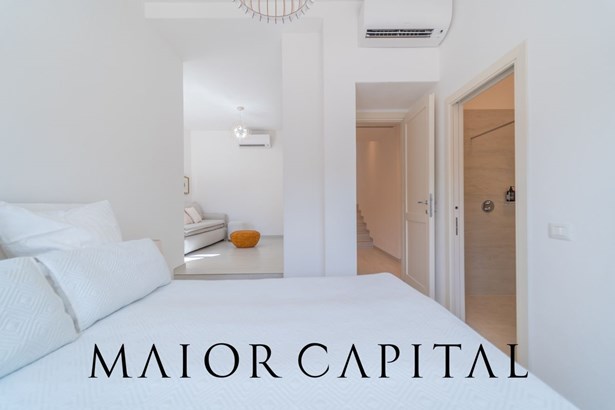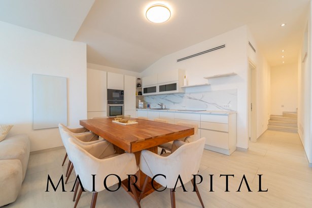 Spanning approx. 160 sqm over multiple levels, the villa is designed to ensure maximum privacy and living comfort. Interiors are decorated in soft tones of white and beige to enhance light and space, in harmony with the surrounding landscape.