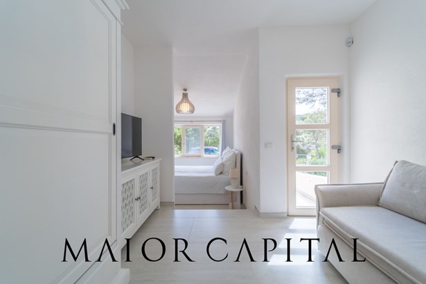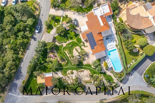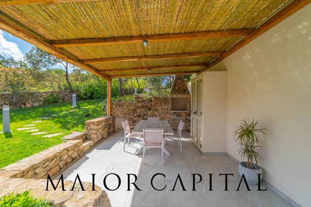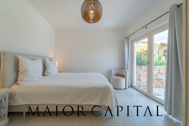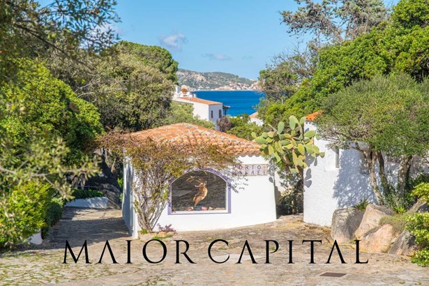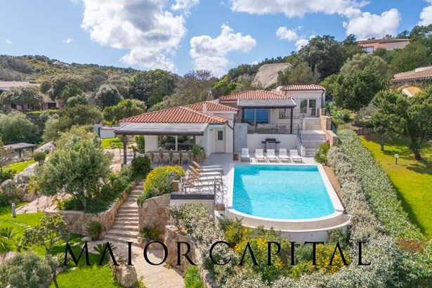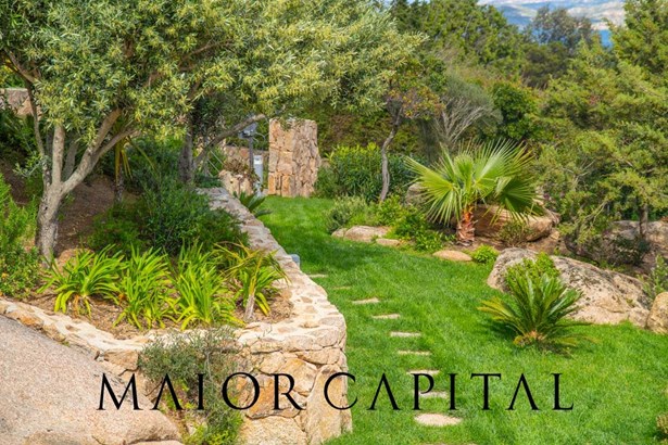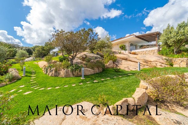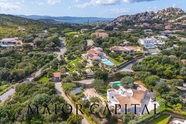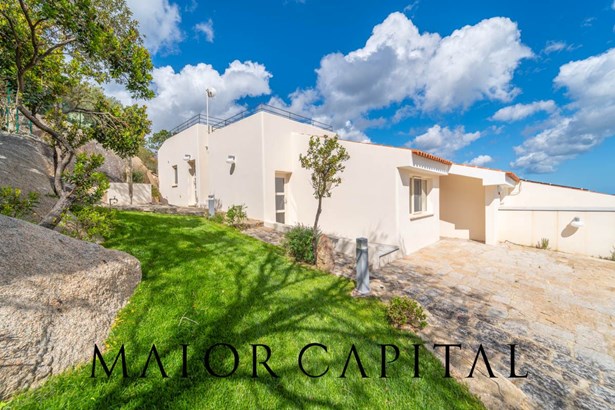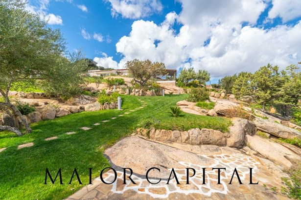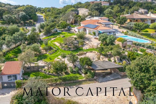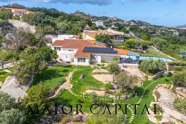 Just minutes from the historic Piazzetta — the elegant heart of the village — the villa blends harmoniously into its surroundings, embraced by wind-sculpted granite rocks and a lush private Mediterranean garden of approx. 2,000 sqm.