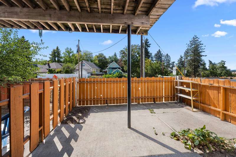Bright open floor plan with slider to fenced patio. Large primary bedroom with direct access to the main full bathroom, with nice subway tile. Oak kitchen cabinets, dishwasher, range, refrigerator, stackable washer and dryer, disposal, and microwave all included. Easy access to Centennial Trail, Spokane River views, West Central Community Center, Cannon Park Pool and Park. Minutes to Spokane Falls Community College and Kendall Yards restaurants, sports arenas, entertainment, downtown Spokane and I90. One carport space and ample off-street parking available. Tenant pays electric. Water, sewer and garbage is paid by Landlord. Must pass rental criteria to apply. Option to Purchase may be available for qualified Tenant. Call or Text Cindi Miraglia at 509-216-8464 for appointment to view.