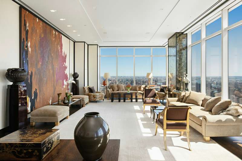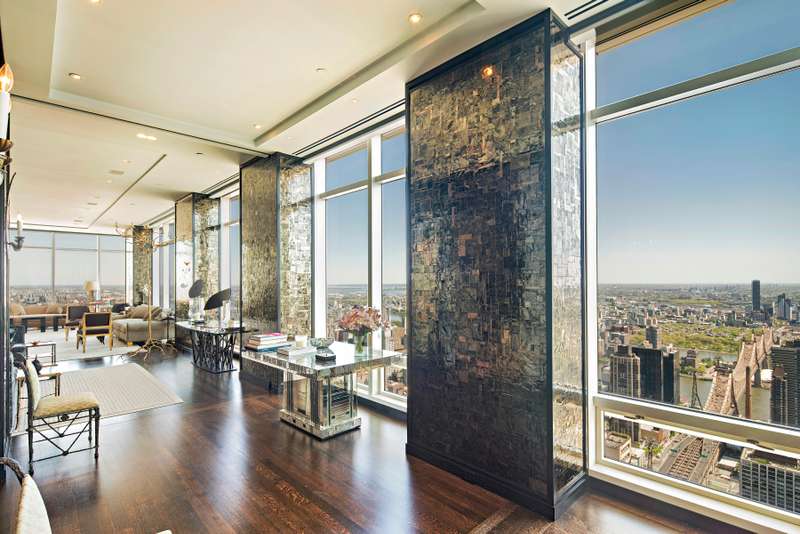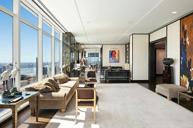 Perched on the 54th floor of One Beacon Court--New York's most prestigious modern landmark with a private circular driveway, designed by renowned architect Cesar Pelli--this stunning penthouse, masterfully crafted by internationally acclaimed interior designer Jacques Grange, occupies the coveted front corner and offers commanding panoramic views. Forty floor-to-ceiling windows and soaring ceilings frame breathtaking vistas of the city and beyond. Light floods every room, highlighting bespoke design details and creating a sense of airy elegance throughout.