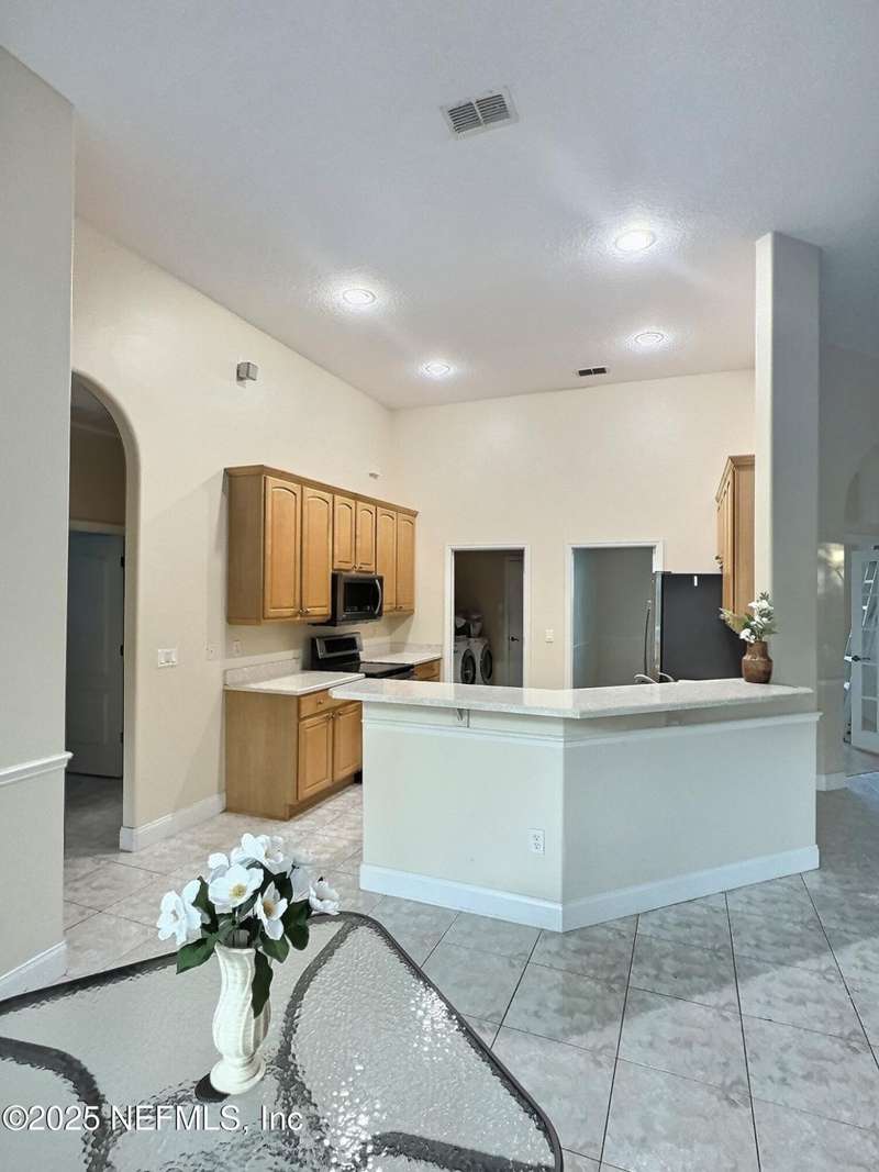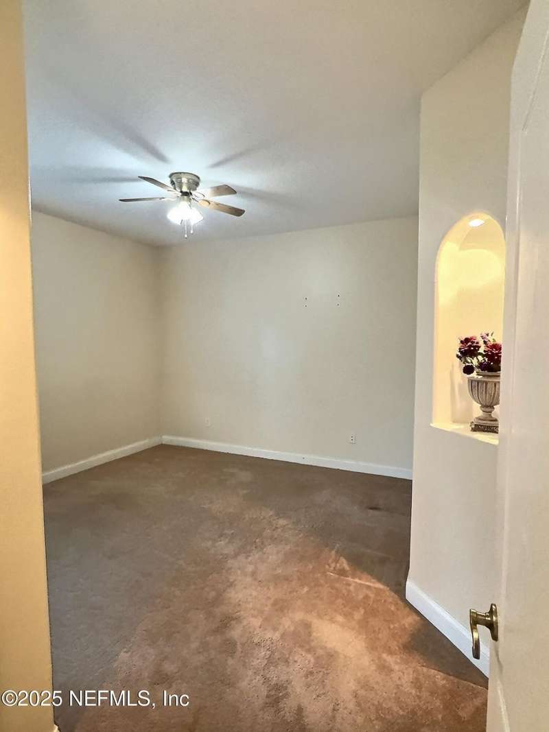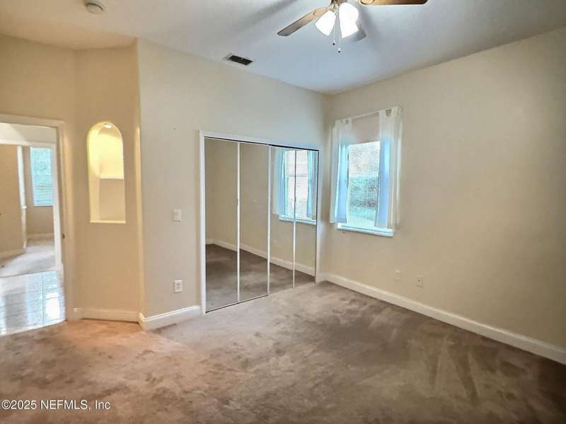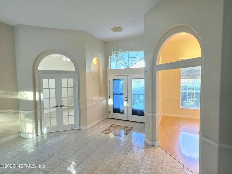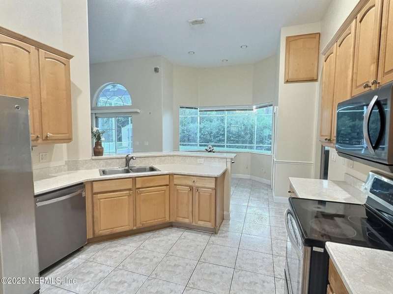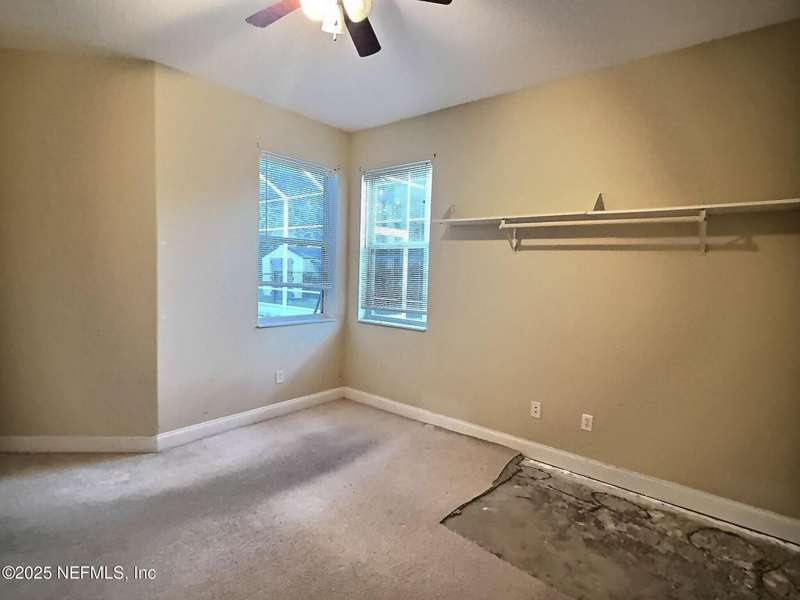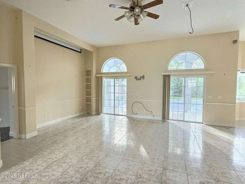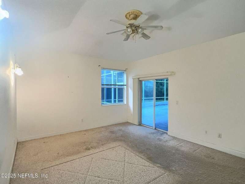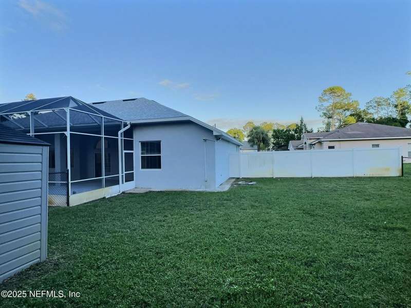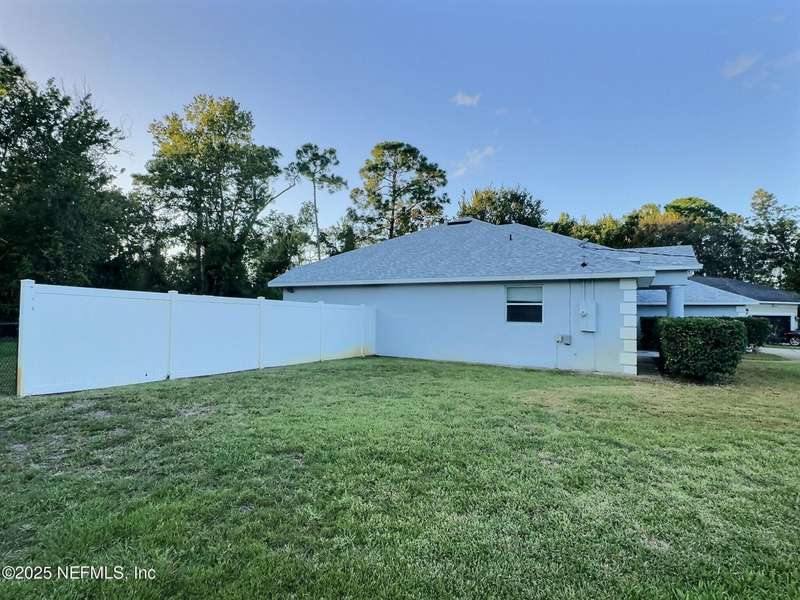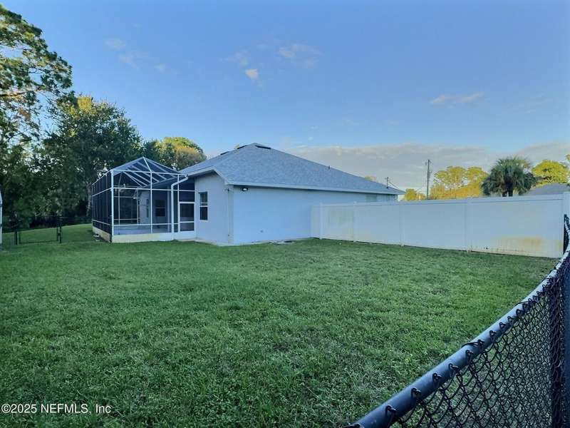 Built in 2003, this 2,256 sq ft concrete block home is nestled on a nearly half-acre cul-de-sac lot that backs up to 19 acres of vacant, wooded municipal land-offering rare privacy and a serene natural backdrop. The spacious yard provides plenty of room for outdoor living and recreation. The roof was replaced in 2024. The HVAC system was replaced in 2018.The exterior boasts a screened patio with both open-air and covered sections, a utility shed, and a well-fed irrigation system. Inside, you'll find high ceilings ranging from 9 to 10.5 feet, a double front entry with a screen door, and sliding glass doors that open to the patio from both the great room and primary bedroom.The kitchen features 42-inch upper cabinets, a bright dining nook with a seamless bay window, and a peninsula with a raised breakfast bar. The interior laundry room includes a hookup for a utility sink. The great room is filled with natural light from large arched windows and includes chair rail trim and built-in storage nooks surrounding a spacious entertainment area. Two adjacent flex rooms offer versatility ideal for a home office, playroom, formal dining room, or even an additional bedroom.The primary suite impresses with a vaulted ceiling, walk-in closet with built-in safe, dual vanity, linen closet, soaking tub, and a walk-in shower with dual shower heads. A split floor plan separates two additional bedrooms and a full bath for added privacy.With its well-designed layout, desirable architectural features, and a prime location on a unique and private lot, this home is a rare find.