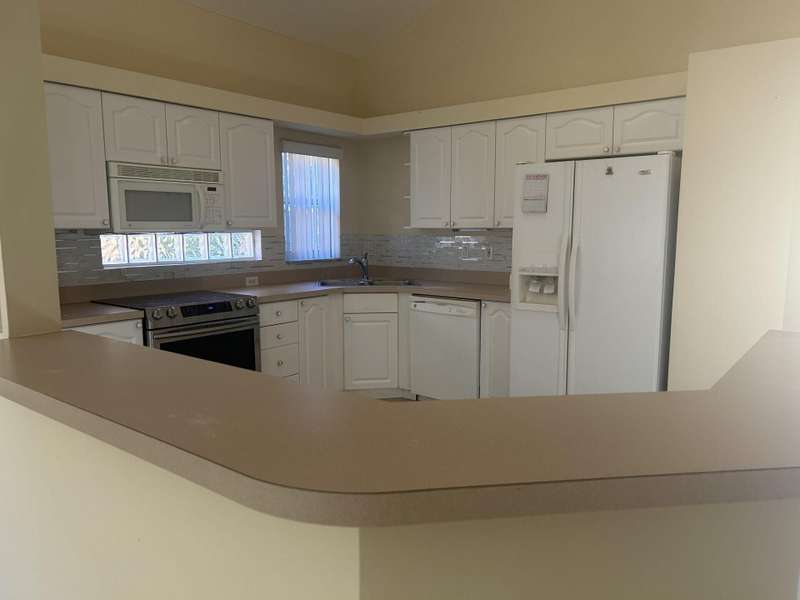 Single story 4 bedroom home, with large porcelain tile through most of the home, looks elegant, well cared, with open layout. Lovely white tiles throughout. Open kitchen. Enclosed porch. Community offers 3 heated pools, spa, exercise room, tennis courts, racquetball .Someting for everyone in the familly. 2 car garage.Great gated community
