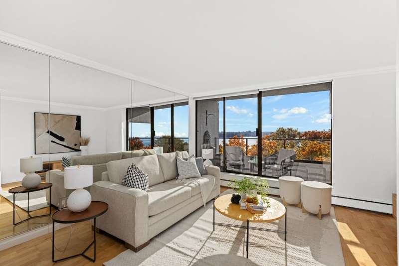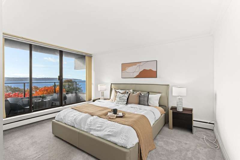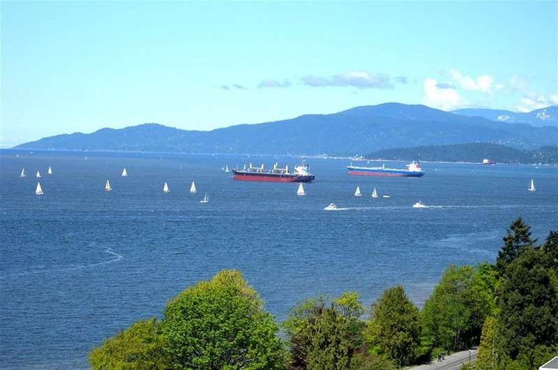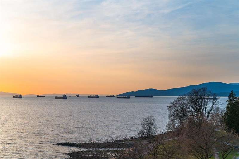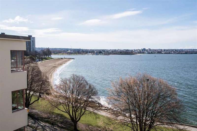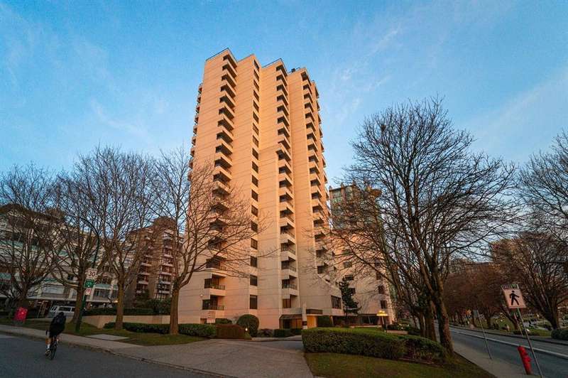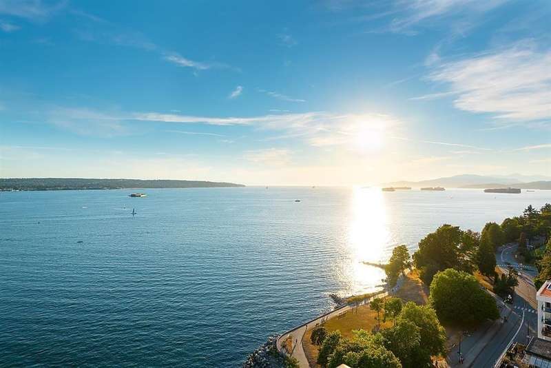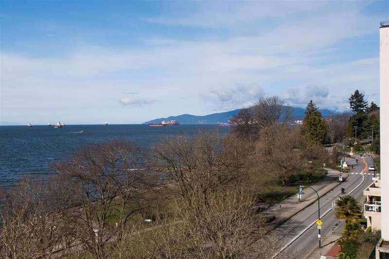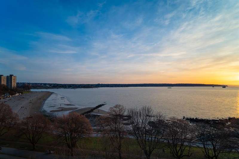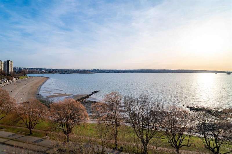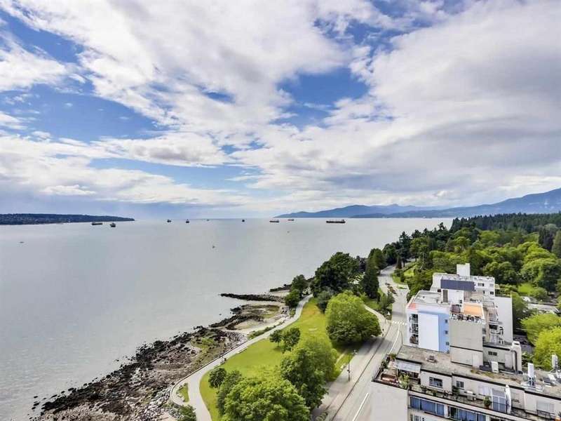 VIEW! VIEW! VIEW! Beach Ave. All views of ocean & two view balconies at prestigious Huntington West. Highest quality refinishing, 2 parking, urban sophistication at its best. West of Denman, ideal location steps to Stanley Park & Seawall. Amazing sunsets. Rock solid construction. In suite laundry & open kitchen. This concrete complex has a solid reputation for quality in the West End. The building has good management and has always taken care of all major issues. Features include: a stunning 360 degree oceanfront rooftop deck & supersized whirlpool & exercise area. Live the good life of English Bay & the coffee shops of Denman Street. Hurry! This one won't last.