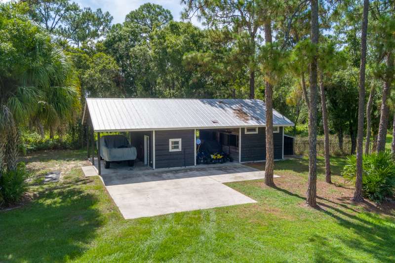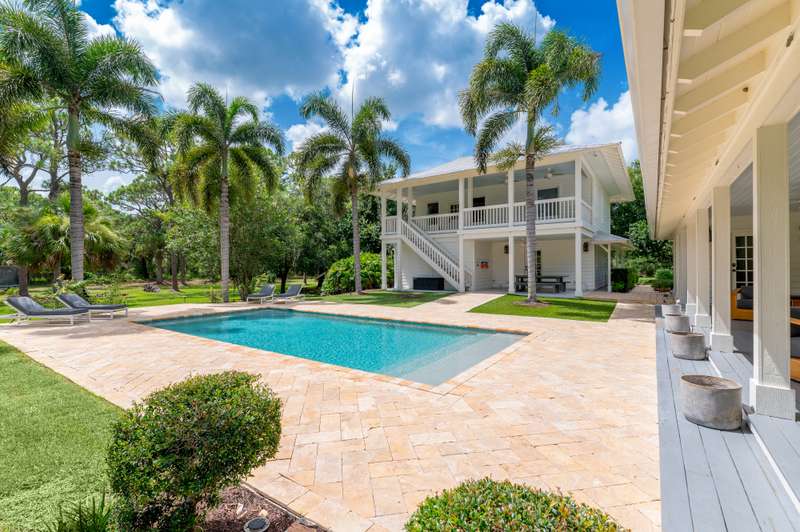 Experienc? the ru?ti? ch?rm ?nd m?dern comforts at thi? e?quisite Palm Beach meets Palm City estate. A mere 25 minutes from Historic Stuart Beach or Jupiter Island, this estate is a haven of amenities. It features a barn with two horse stalls, an air-conditioned storage/workshop, and a fishing pond, complemented by a stunning pool, fire pit, and a detached three-car garage with an accompanying new tree house with a zip line. A secure gate opens to an expansive driveway leading to the main residence and a separate path to the guest quarters. The main residence is a showcase of luxury with three bedrooms, three bathrooms, lofty ceilings, premium appliances, gas cooking, and an inviting wrap-around porch. The guest house offers a private bedroom, bathroom, kitchen, and living space on the upper level, plus an extra bedroom and bathroom on the lower level. Nestled on ten acres, this extraordinary estate promises a private resort-like retreat that stands out as truly unique.