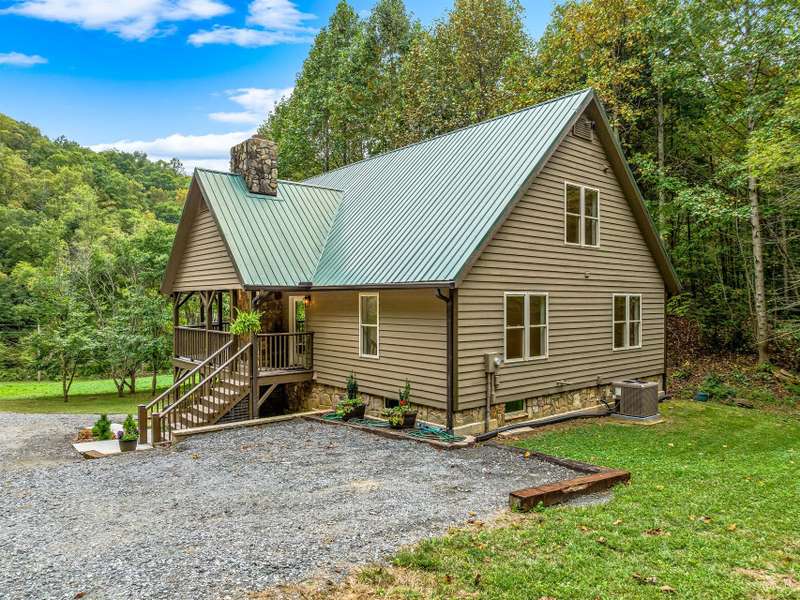 First time on the market! This amazing secluded mountain estate encompasses 201 +- lush acres w/several creeks, a 1952 SF Contemporary home, a cozy 1416 SF Big Pine Log Cabin + an inspiring standing Civil War Era Cabin all w/metal roofs on the property. The contemporary home is updated, refreshed, newly painted & includes a primary suite w/ensuite bath on the upper level accessed via a wood staircase. On the main level you will find a brand new kitchen w/stainless/black appliances & quartz countertops, a great room w/dining area, rock fireplace & wall to ceiling doors/windows, 2 bedrooms, a full bath & huge covered deck overlooking the fire pit & views. The basement level is updated to include a full mini kitchen, a great room w/rock fireplace, a full bath & lower covered patio + a storage/utility area that could be converted to living space if desired. The fully furnished Big Pine Log Cabin is very well maintained & includes 2 primary suites w/ensuite baths, laundry, a great room.