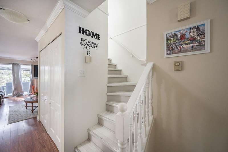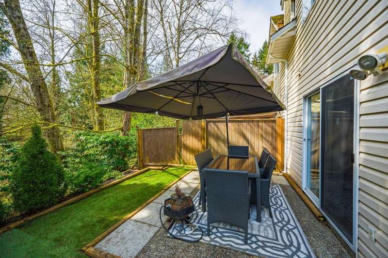 Private and secluded complex located in prime West-Maple Ridge. The master bedroom has its own private deck & 4 pce bathroom with granite under-mount sink & soaker tub. Owner will create third bedroom with the addition of one door. Laminate flooring on the main floor. Easy to clean. Second bathroom on main floor. Crown mouldings & a fireplace. South-facing back yard with a beautiful creek. Well-maintained complex. All new PEX plumbing. All blacktop is being replaced in the complex with the seller paying their share.