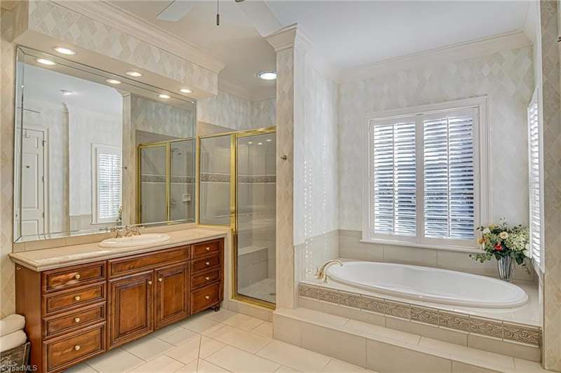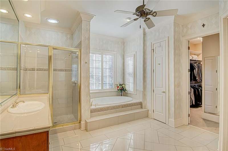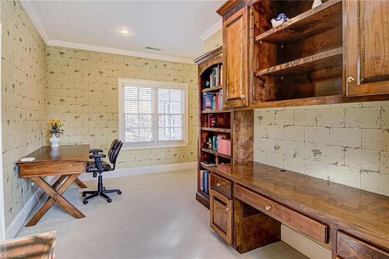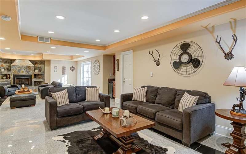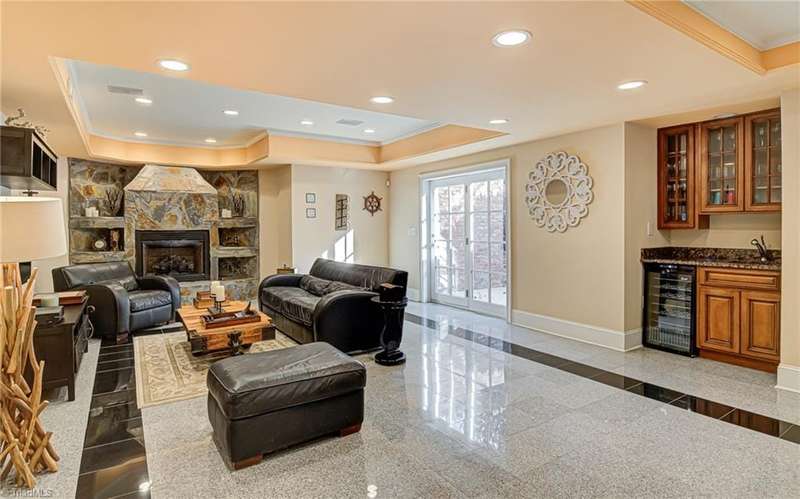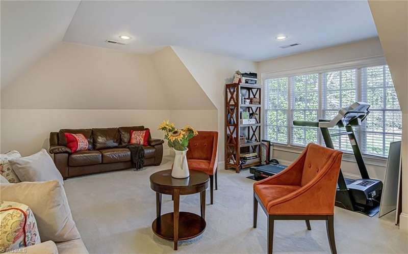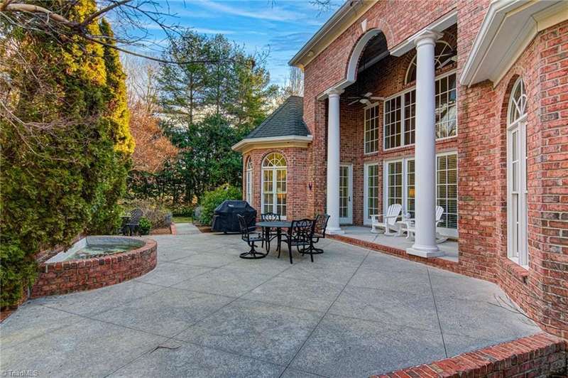 Located in Buena Vista on over an acre lot. This stately home has a private setting on a knoll tucked into the back of the Reynolda Place neighborhood. At over 5,000 square feet this four bedroom, four and two half-bath home has room for everyone to have their own private bath and personal space. Main level primary bedroom with access to the patio. Two story great room also opens to the rear patio through french doors to reveal a stone fountain centered in the partially covered outdoor living space. Immaculately landscaped with mature trees giving the backyard an intimate setting. Rear facing three car garage with extra room for storage. Large turnaround/parking pad with additional parking near the front door. Large walkout basement with half bath, wet bar, and one of two fireplaces in the home. Just under 600 sq ft of additional flex rooms perfect for storage. Bonus room off of the second floor office makes a great home gym.