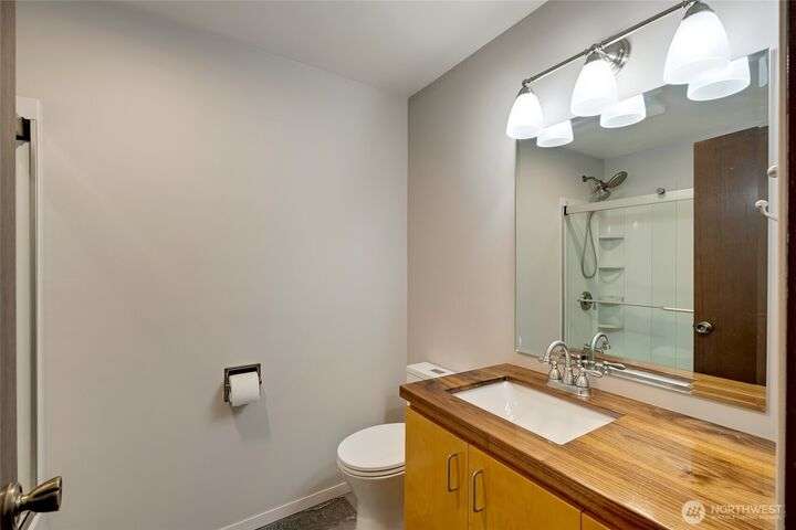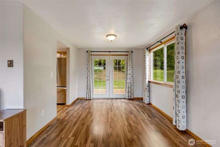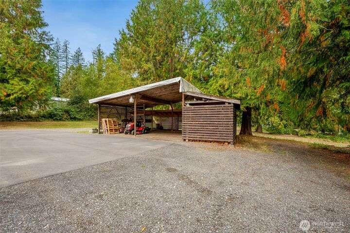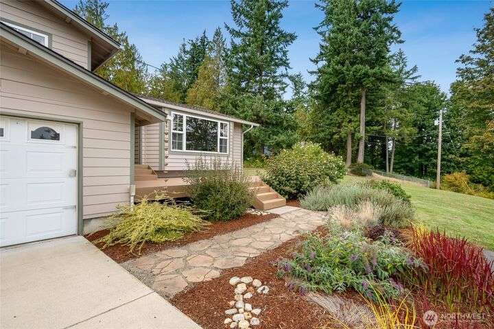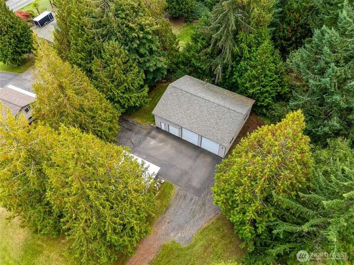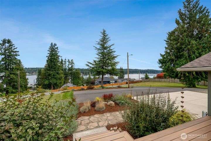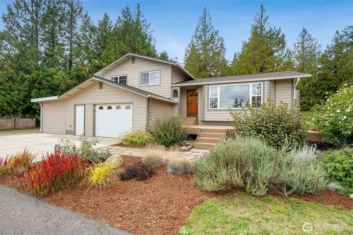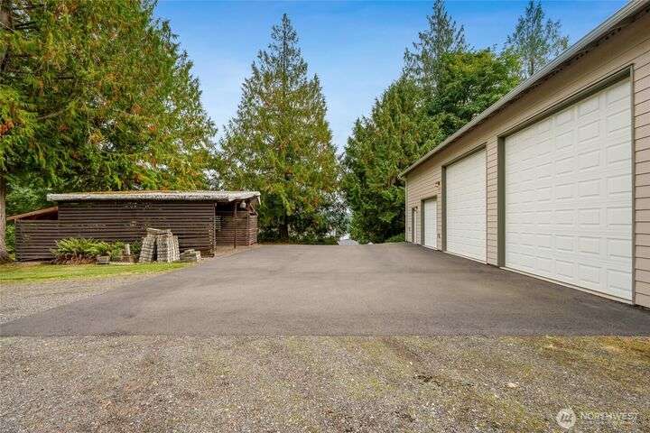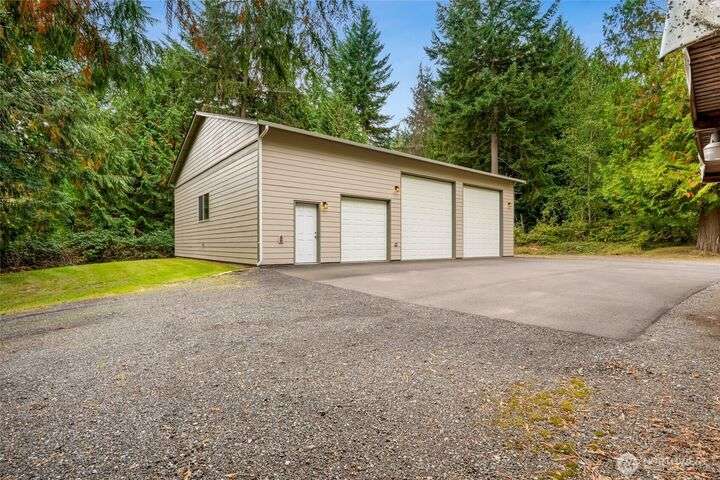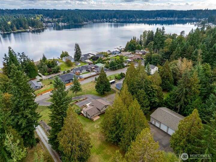 The view will draw you in, but the upgrades, shop, and acreage will make you stay! From the paved driveway to the sparkling lake view, this home feels like a getaway every day. Inside, hardwood floors, hickory cabinetry, a custom wine rack, and French doors create a warm, inviting space. Recent updates include a remodeled primary bath, 2025 roof with transferable warranty, PEX plumbing, and serviced septic for peace of mind. The shop offers water, ethernet, 100-amp service, 50-amp welder outlet, and air compressor hookup. This move-in-ready Lake Goodwin retreat is ready to live, work, and play!