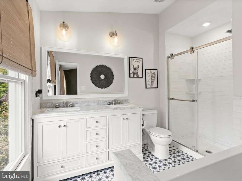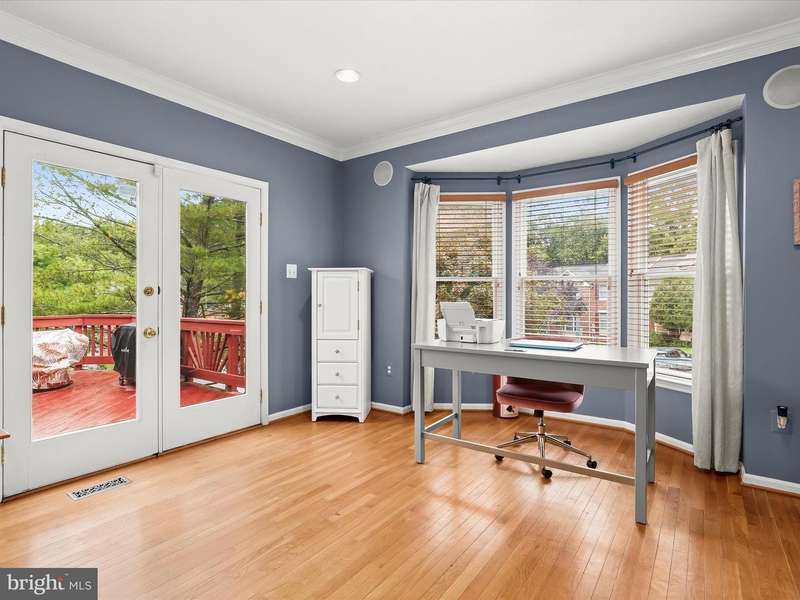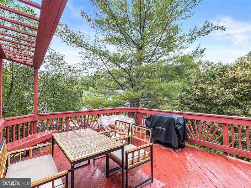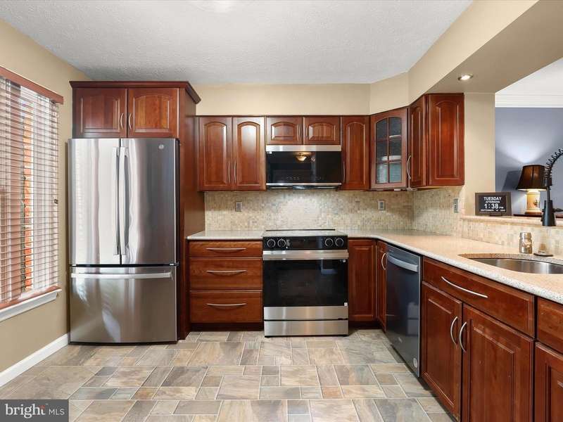 Welcome to the sought-after Greenspring East community of Pikesville, just moments from the shopping, dining, and conveniences of Quarry Lake. This brick end-unit townhouse blends comfort and style, beginning with hardwood floors that flow seamlessly through the open-concept dining and living areas. The dining room features crown molding and overhead lighting, complemented by a modern ceiling fan. In contrast, the living room offers custom blinds, a bay window, and a double-sided gas fireplace that shares space with the dining area, ideal for entertaining or cozy evenings. The kitchen is beautifully appointed with display cabinetry, updated flooring, a decorative backsplash, stainless steel appliances, Quartz counters, and a spacious pass-through to the dining room for ease of hosting. Step outside to the spacious deck for effortless indoor-outdoor living. The upper-level primary suite is a retreat, featuring hardwood floors, vaulted ceilings, a walk-in closet, and a spa-like bath with a soaking tub, dual vanity, and walk-in shower. Two additional bedrooms and a full hall bath complete the sleeping quarters. The fully finished lower level extends your living options with a guest suite, full bath, kitchenette, laundry, and direct access to the beautifully landscaped yard. Convenient to I-695, I-83, and I-95, this home offers easy access to both downtown Baltimore and Washington, D.C. Updates: Sliding Glass Door, Laundry Room, Lower Level Bath, Hot Water Heater, Stove, Microwave, Carpet on the Stairs, Ceiling Fan, Hearing Impaired Smoke Detectors, and the Faucet in the Kitchen.