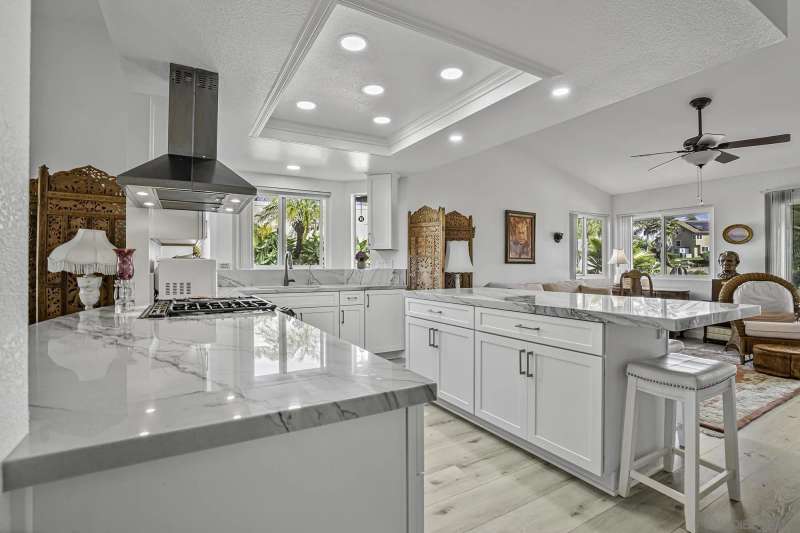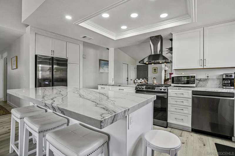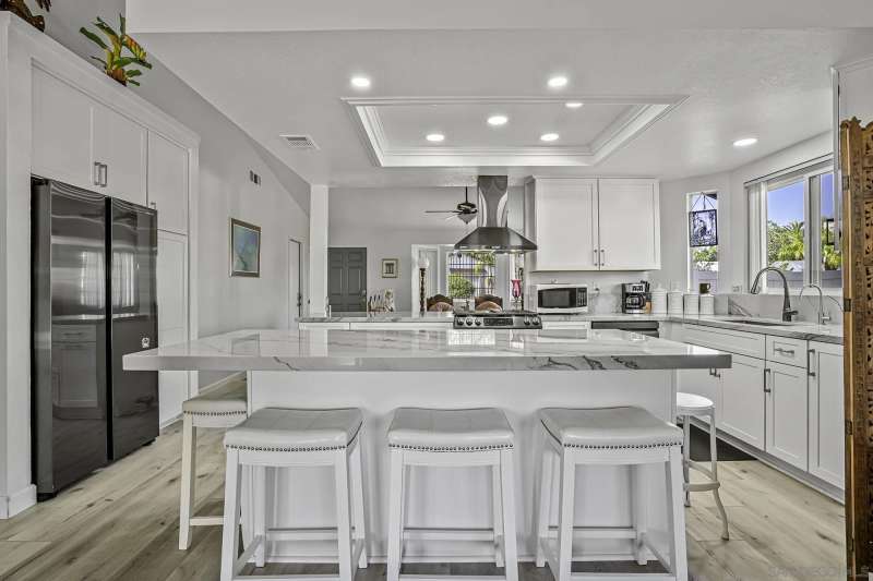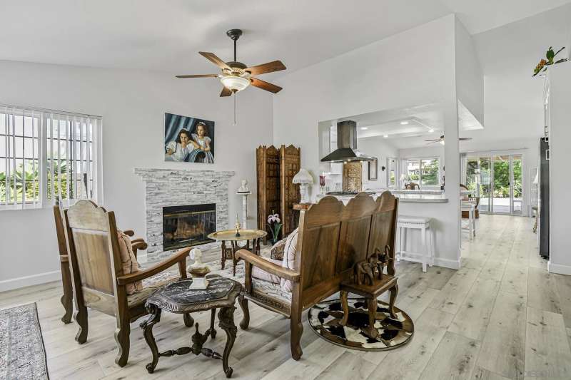 UPGRADED SINGLE-STORY! LARGE LOT! Situated on nearly a quarter-acre, this beautifully remodeled 3-bedroom, 2-bathroom home offers modern living and privacy. The open-concept design features cathedral ceilings, wide-plank vinyl flooring, and a cozy gas fireplace framed in marble. The chef-inspired kitchen boasts black stainless steel appliances, natural white quartzite counters, a 6-foot island with an extended overhang, pendant lighting, and a pantry with soft-close drawers and doors. Retreat to the spacious primary suite with a completely updated bathroom, dual-sink vanity, and designer finishes. Both bathrooms have been tastefully remodeled with new lighting, mirrors, and fixtures. Additional upgrades include dual-pane windows, recessed lighting with dimmers, new HVAC and water heater (2023), a new roof (2023), interior and exterior paint, and paneled doors throughout. Step outside to a low-maintenance yard with desert landscaping, drip irrigation, mature fruit trees and plenty of space for entertaining--or potential RV parking or an ADU. No HOA! Conveniently located near Alamosa Park and Alamosa Park Elementary School.
