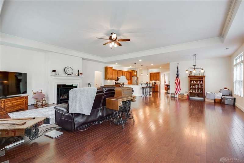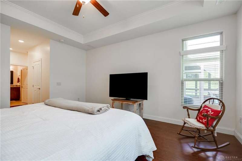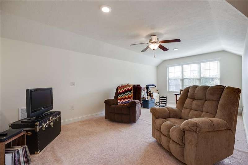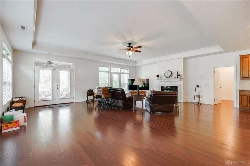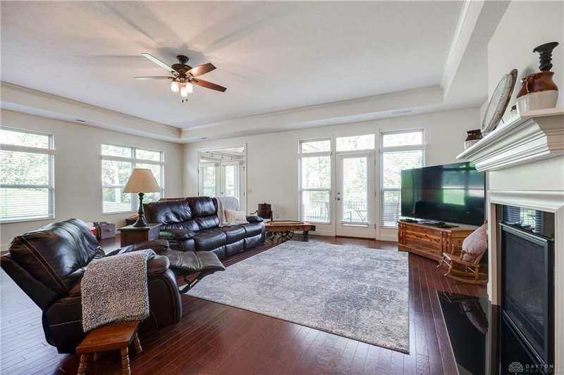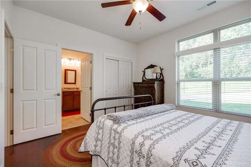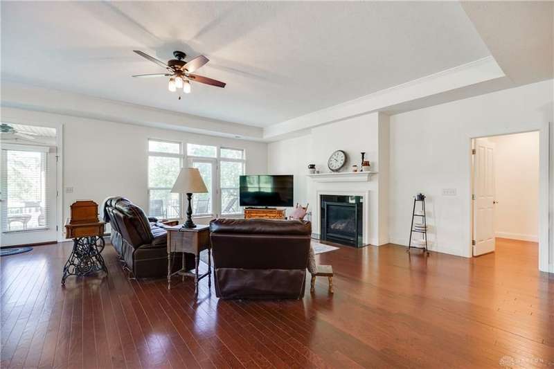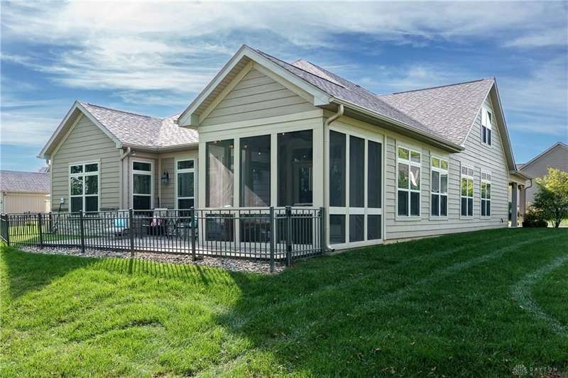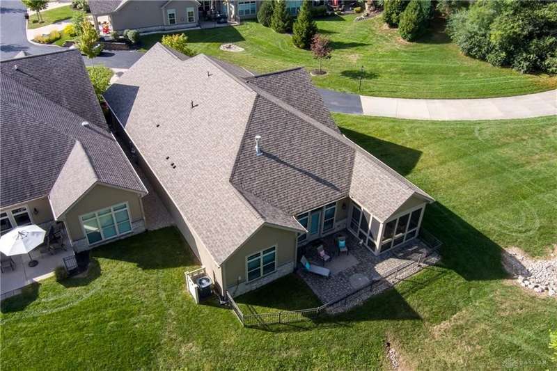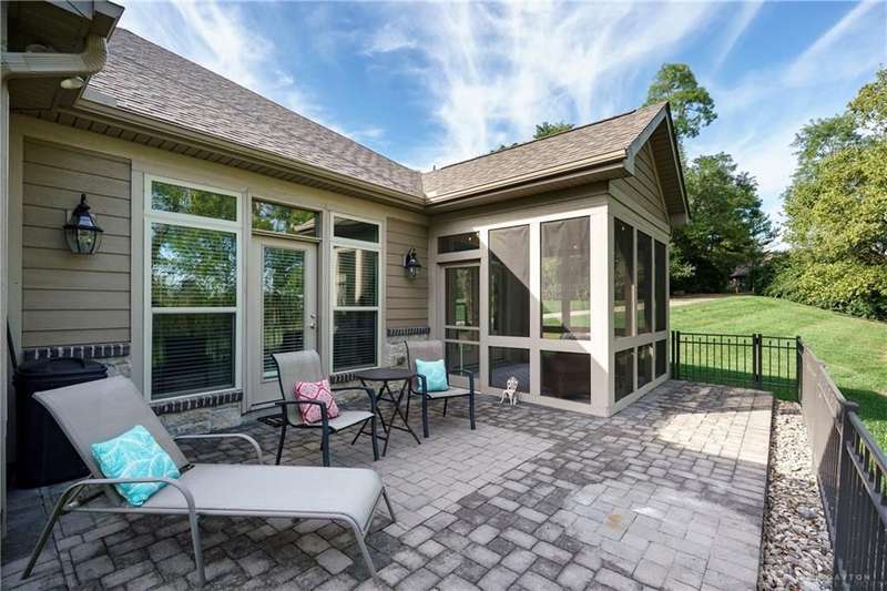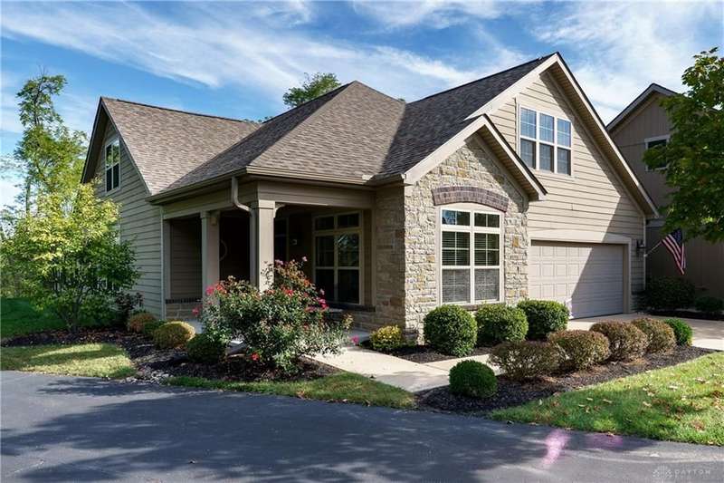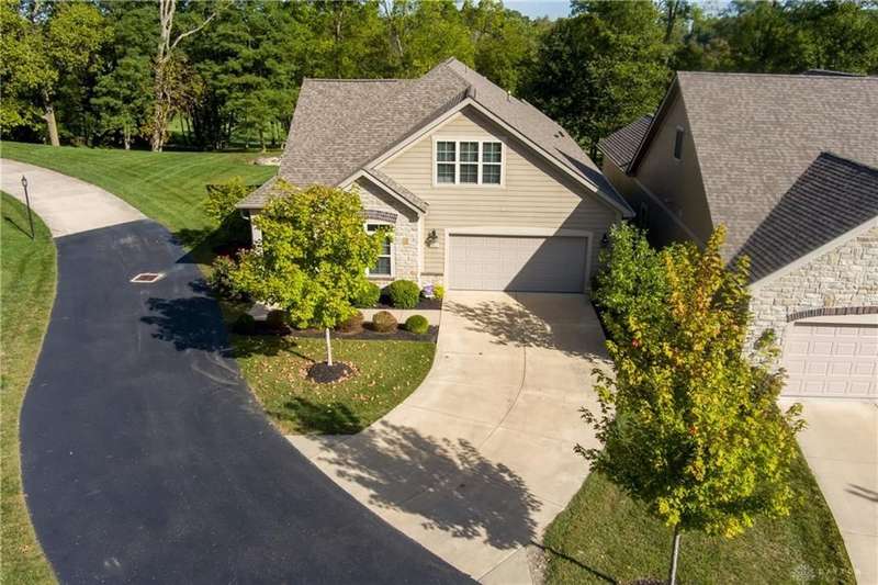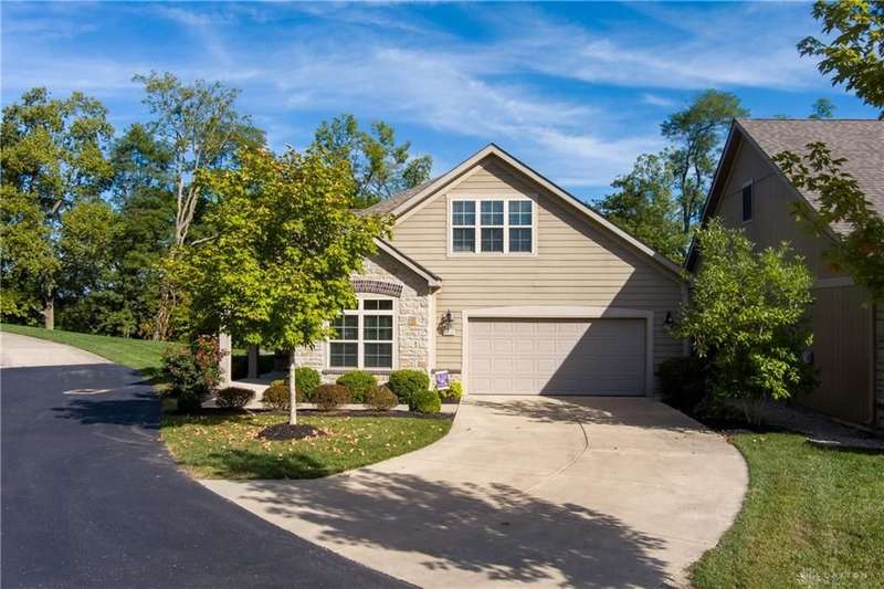 One of a kind view! This custom built condo sits high above the 16th hole of the Beavercreek Golf Course. Shaded by trees, you can enjoy the view from the screened in patio or open terrace. Situated next to a walking path, evening strolls will be a pleasure. Inside you will find an inviting entry, perfect study with tall windows for lots of light. A guest bedroom, full guest bath and laundry are also on the first floor. The kitchen, dining area and great room are one open space allowing for conversations, spacious room arrangements and outstanding winter views of the outdoors. Kitchen counters are granite. Fireplace is gas. The primary bedroom is on the first floor with two walk in closets, full bath and its own private view of the hillside. There is a second floor finished into a loft style sitting room and a third bedroom with its own full bath. An ideal space for over night visitors or a private quarters for a family member or care taker. The Villas HOA offers a beautiful clubhouse, pool and work out room. Water and trash are included in the condo fee as well as hazard insurance, lawn care and snow removal. 2833 Hackberry Lane is an easy commute to Wright-Patt AFB, Wright State University, Soin Medical Center and I-675 . This unique condo is well designed and sits in a spectacular setting offering a great place to live and a quiet retreat.