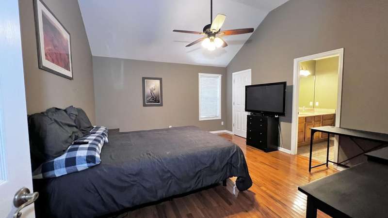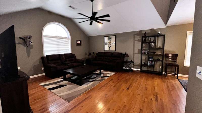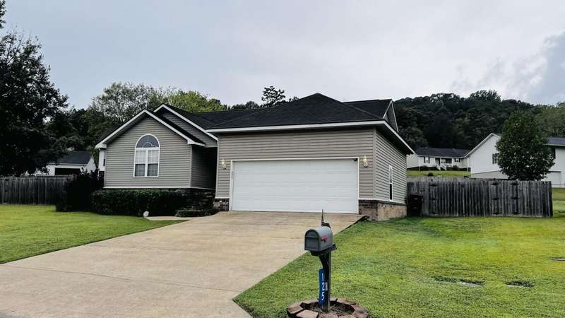 Pretty house in popular subdivision. This home features an open floor plan, hardwood floors in entry, living,dining & hallway. Tile in kitchen, laundry room & baths. Each bedroom is carpeted and has a walk-in closet. The master suite has vaulted ceilings. There is a small covered porch on the back which provides a great place to sit and watch the kids play in the fenced in backyard.