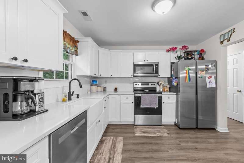 Welcome to this beautifully renovated 5-bedroom, 2-bathroom bi-level home tucked away on a quiet dead-end street in Browns Mills. Backing to serene woods, this home combines privacy, charm, and modern upgrades in one perfect package. Completely renovated just two years ago, the home showcases a farmhouse chic style throughout. Step inside to find a spacious and inviting living area filled with natural light. The large kitchen is the heart of the home, offering abundant counter space, a deep farmhouse sink, stainless steel appliances, and stylish finishes that make cooking and entertaining a joy. Just off the kitchen, a flexible sixth bonus room can serve as a butlers pantry, home office, den, or additional storagetailored to your needs. The home features five generously sized bedrooms, perfect for accommodating family, guests, or even creating a home gym or hobby room. Two updated bathrooms provide modern convenience, while the bi-level layout ensures functional living spaces for everyone. Step outside and enjoy the peace of your wooded backyard setting, offering the perfect backdrop for relaxing evenings, outdoor activities, or simply taking in the quiet surroundings. Located just 10 minutes from both Joint Base McGuire-Dix-Lakehurst (JBMDL) and Deborah Heart and Lung Center Hospital, this home is ideal for service members and their families, as well as anyone seeking a large and spacious, move-in-ready home at an excellent value with a short work commute. Dont miss your chance to own this farmhouse-inspired gem on a private street in Browns Millsschedule your showing today!