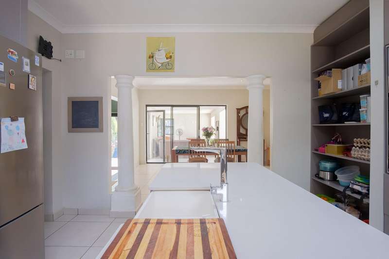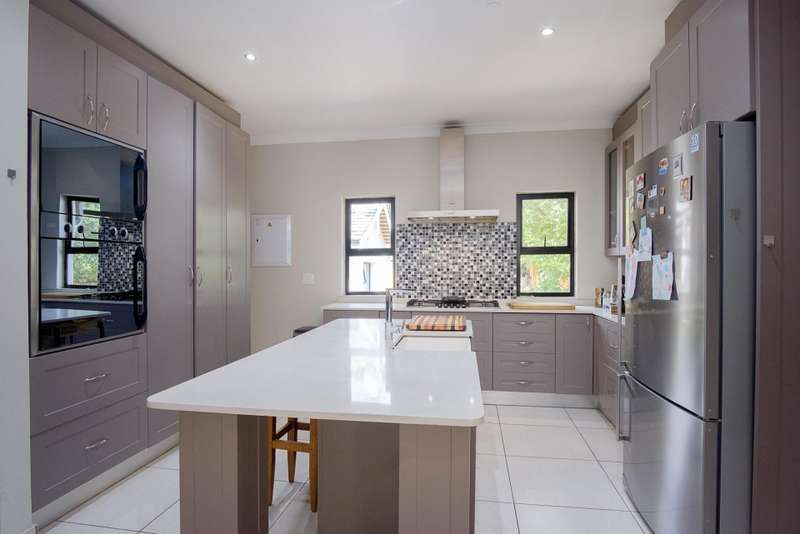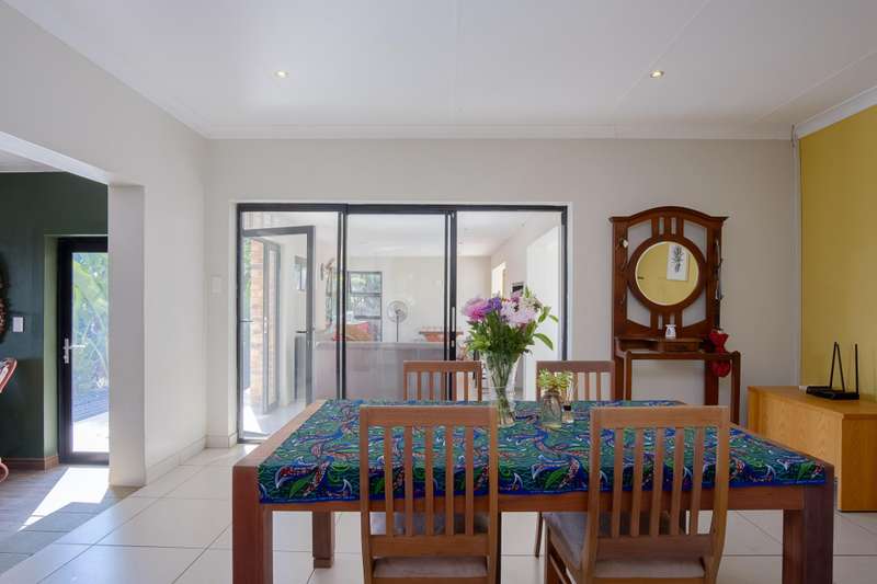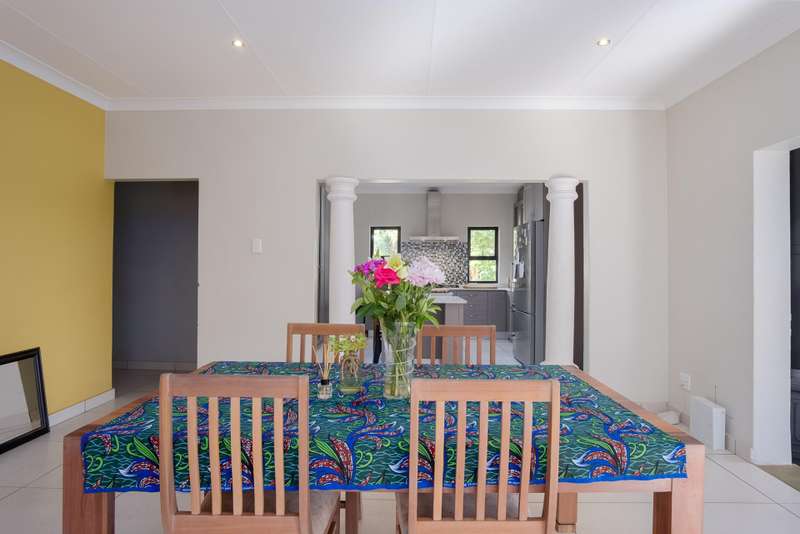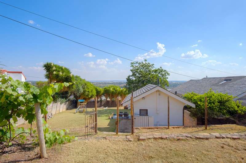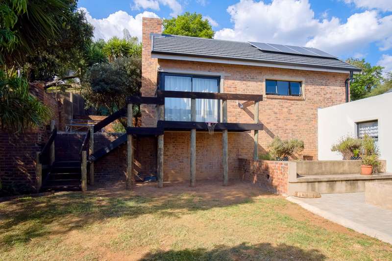 FINE FAMILY FARE ON A FULL STAND WITH FLATLET EXCLUSIVE MANDATE This sprawling home, on a full 2000m2 stand, is perched high on the hill in this popular suburb offering that sought after lifestyle. With 5 Bedrooms and 3 bathrooms (including a separate guest suite), there is more than enough space for the entire family. A beautifully modern kitchen (with a double oven and gas hob) opens onto a light and bright dining area. Separate scullery/laundry. The comfortable and spacious living area comes with sliding doors that enhance the sweeping views. The covered patio, with a built-in braai encourages exciting entertaining. A welcome bonus is the fully self-contained flatlet (separate from the main house) with a lounge/dining area, kitchenette, bedroom and bathroom. Other value adds include: Solar system (6 panels, 10kW inverter, 2 x 5kW batteries. A study, perfect for the work-from-home trend. Large established garden with space for the kids to play. 3 Garages (2 automated) Carport and extra off-street parking. Excellent security includes a wireless Paradox alarm system, outdoor beams plus 10 CCTV cameras. Fibre installed.