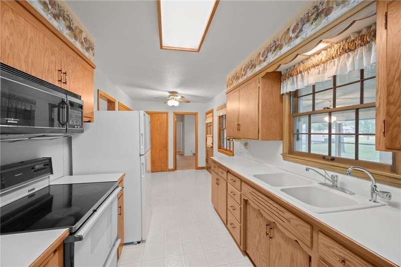Charming 3 bedroom rambler with detached 3 car garage. Welcome to this beautifully maintained 3 bedroom, 2 bath rambler offering comfort, functionality, and timeless appeal. All three bedrooms are conveniently located on one level, providing ease and accessibility. The home features an inviting eat in kitchen and a formal dining room, ideal for both everyday living and entertaining guests. The main living room showcases a striking wood burning fireplace, creating a cozy focal point and inviting atmosphere. The lower level expands your living space with a spacious family room accented by tongue and groove walls and a second fireplace. An adjacent great room provides versatility for hobbies, recreation, or a play area. Enjoy the serene three season porch overlooking a private yard shaded by mature trees, perfect for morning coffee or evening relaxation. A detached 3 car garage offers ample space for parking, storage, or workshop needs. This property combines classic charm with practical living, making it an excellent opportunity to call home. All items currently on the property stay with the property.