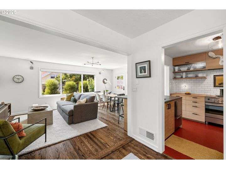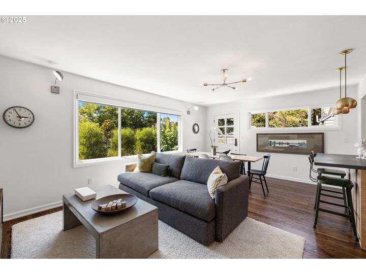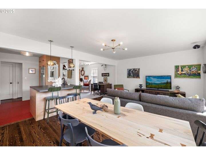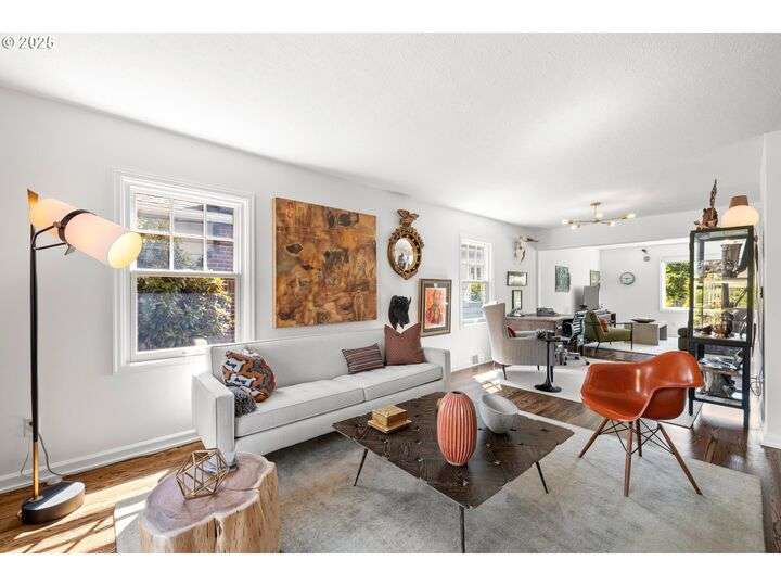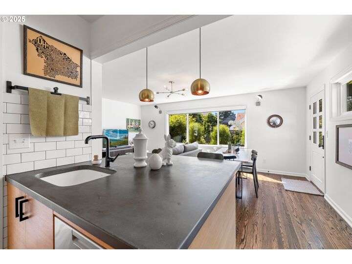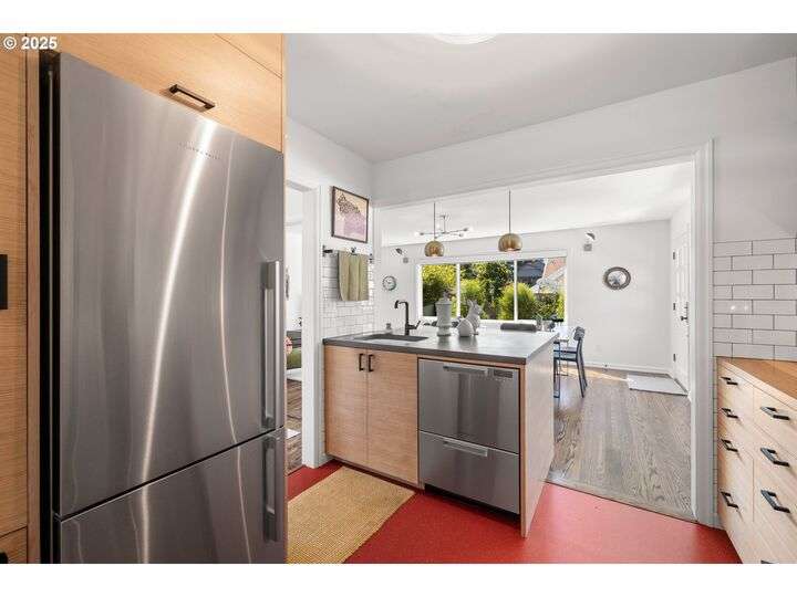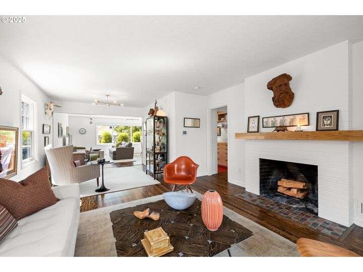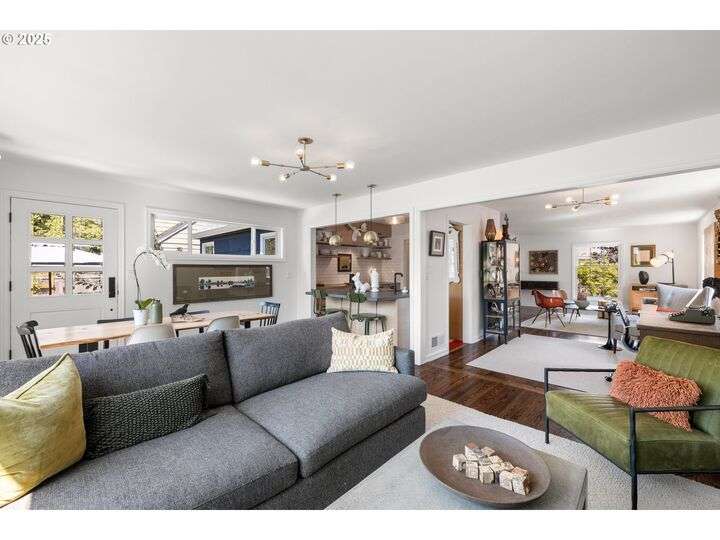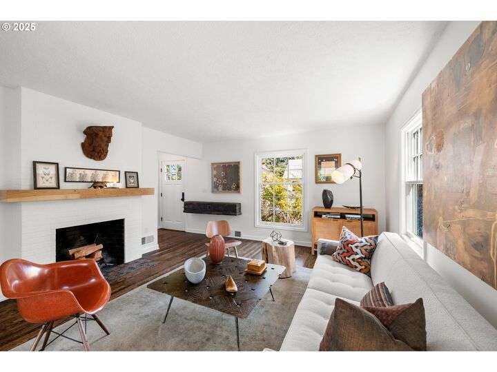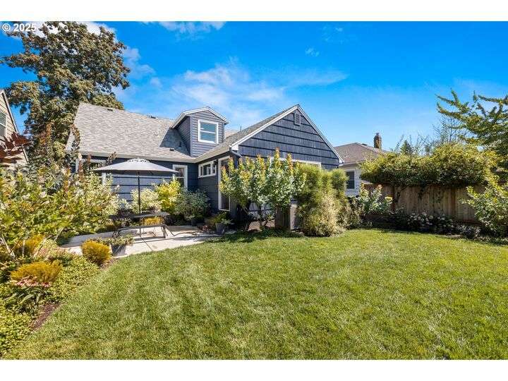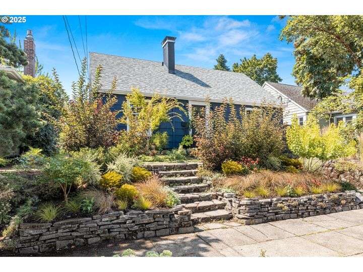 Sunday 9/14 OPEN HOUSE 1-3pm Perfectly located between Alberta Arts and Alameda Ridge, this navy-blue Cape Cod blends classic Portland charm with thoughtful updates that balance timeless design with everyday livability. Inside, the home feels cozy yet spacious, with refinished hardwoods, fresh interior and exterior paint, and an open flow that connects the kitchen, dining, and family areas seamlessly to the outdoors.The kitchen was designed with both style and function in mind—Fisher & Paykel appliances, custom cabinetry and lighting, create an aesthetically pleasing space. The formal living room, anchored by a wood burning fireplace, offers a midcentury Madmen martini vibe while the open family room and dining area invite casual everyday connections. From there, you have direct access to a professionally landscaped yard with automated irrigation and lighting, and a lush garden setting—perfect for outdoor entertaining or dining al fresco.The primary bedroom is conveniently located on the main level, for those wanting main level living, with 2 additional well appointed bedrooms upstairs for those who would prefer upper level sleeping quarters. Both bathrooms have been updated with a designer’s eye, elevating daily routines. From its polished renovations to its walkable location and outdoor spaces that feel like a private oasis, this is a home that truly “lives large” while holding onto its Cape Cod charm [Home Energy Score = 6. HES Report at https://rpt.greenbuildingregistry.com/hes/OR10013675]
