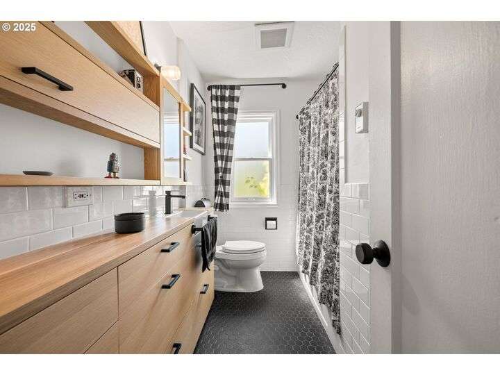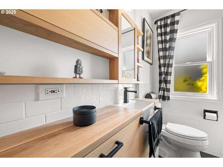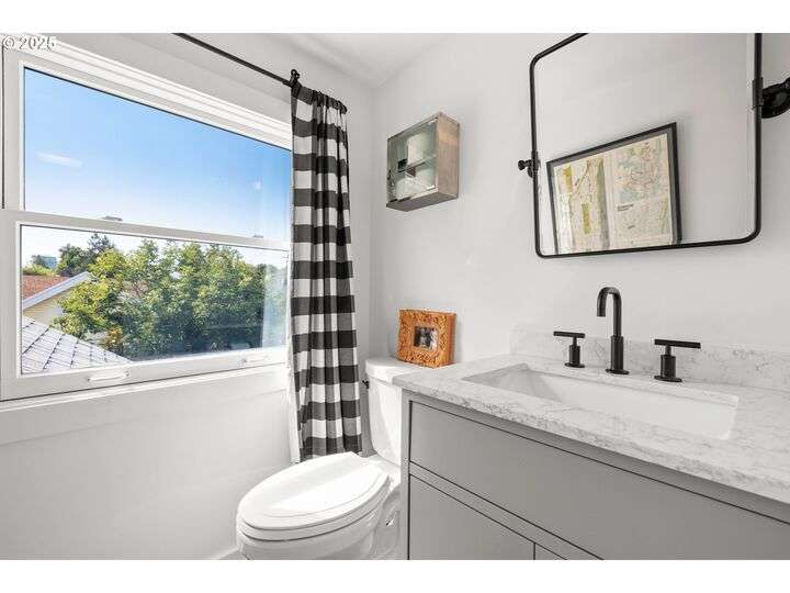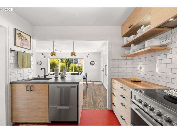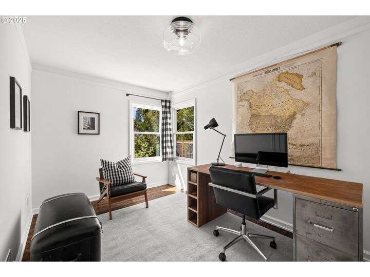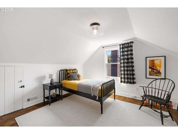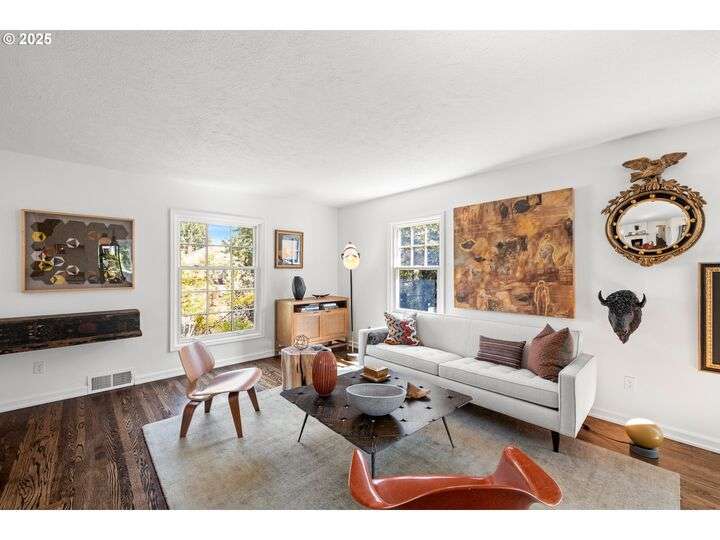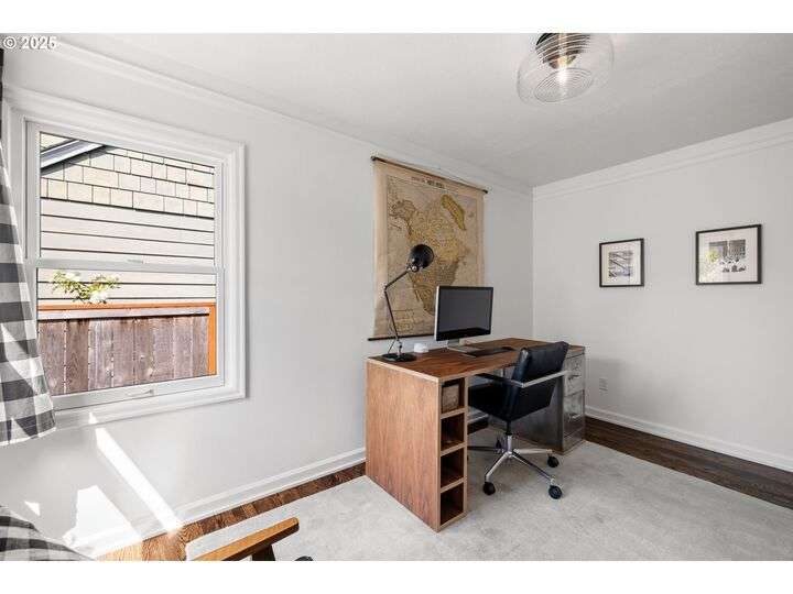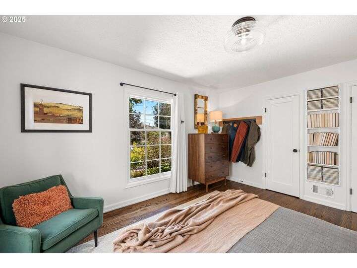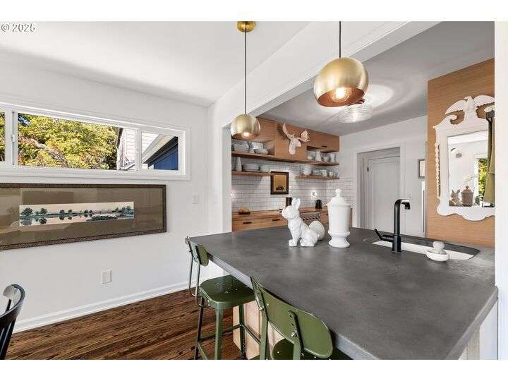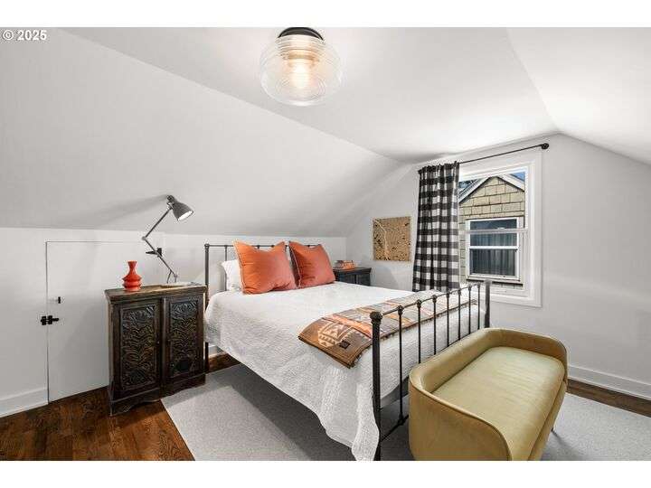 Sunday 9/14 OPEN HOUSE 1-3pm Perfectly located between Alberta Arts and Alameda Ridge, this navy-blue Cape Cod blends classic Portland charm with thoughtful updates that balance timeless design with everyday livability. Inside, the home feels cozy yet spacious, with refinished hardwoods, fresh interior and exterior paint, and an open flow that connects the kitchen, dining, and family areas seamlessly to the outdoors.The kitchen was designed with both style and function in mind—Fisher & Paykel appliances, custom cabinetry and lighting, create an aesthetically pleasing space. The formal living room, anchored by a wood burning fireplace, offers a midcentury Madmen martini vibe while the open family room and dining area invite casual everyday connections. From there, you have direct access to a professionally landscaped yard with automated irrigation and lighting, and a lush garden setting—perfect for outdoor entertaining or dining al fresco.The primary bedroom is conveniently located on the main level, for those wanting main level living, with 2 additional well appointed bedrooms upstairs for those who would prefer upper level sleeping quarters. Both bathrooms have been updated with a designer’s eye, elevating daily routines. From its polished renovations to its walkable location and outdoor spaces that feel like a private oasis, this is a home that truly “lives large” while holding onto its Cape Cod charm [Home Energy Score = 6. HES Report at https://rpt.greenbuildingregistry.com/hes/OR10013675]