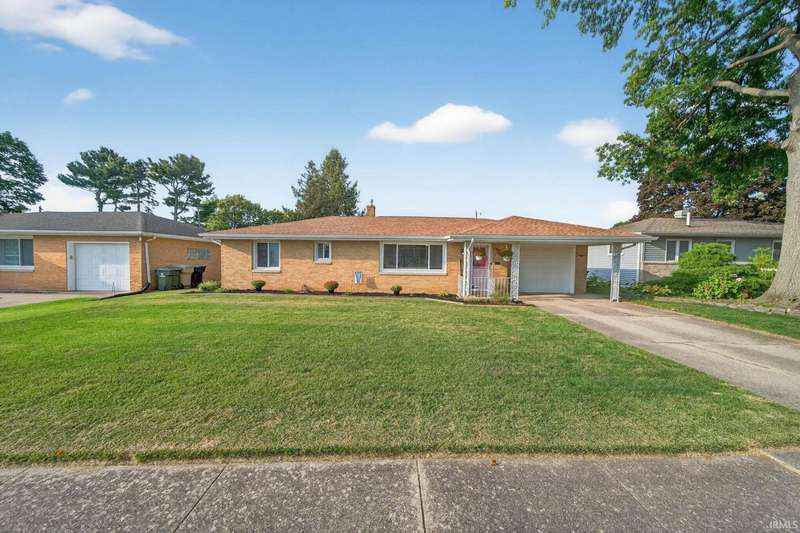 Prepare to be impressed by this beautiful mid-century, move-in ready all-brick ranch nestled in a quiet south side neighborhood. Step inside to a spacious and inviting living room that flows seamlessly into the eat-in kitchen?complete with a window overlooking the large, fully fenced backyard. Enjoy added privacy with no rear neighbors as this property backs up to Monroe School, offering peaceful views and a quiet setting. The home features two bedrooms with cedar-lined closets and a recently updated bathroom. You'll appreciate the convenience of a large main-floor laundry room and an extended garage that provides plenty of additional storage. The exterior is beautifully landscaped, offering curb appeal you'll love coming home to. Recent updates include new HVAC (2024), new roof (2023), new water heater (2022), newer garbage disposal, replacement vinyl windows and fresh interior paint through the home. Ideally located just minutes from shopping, dining, schools, and easy bypass access. Don't miss this opportunity to own this charming home!