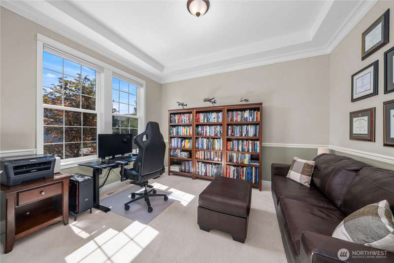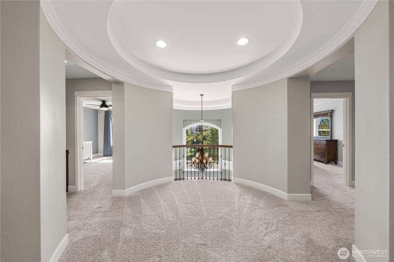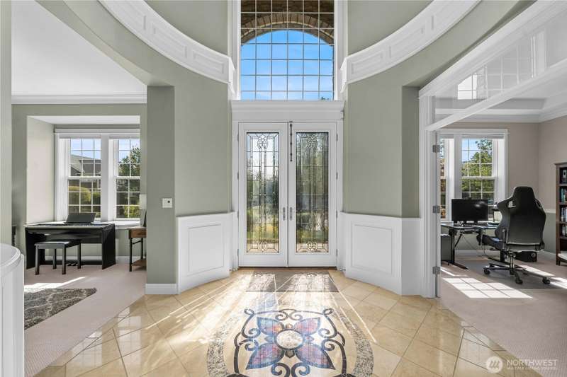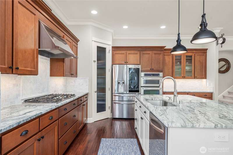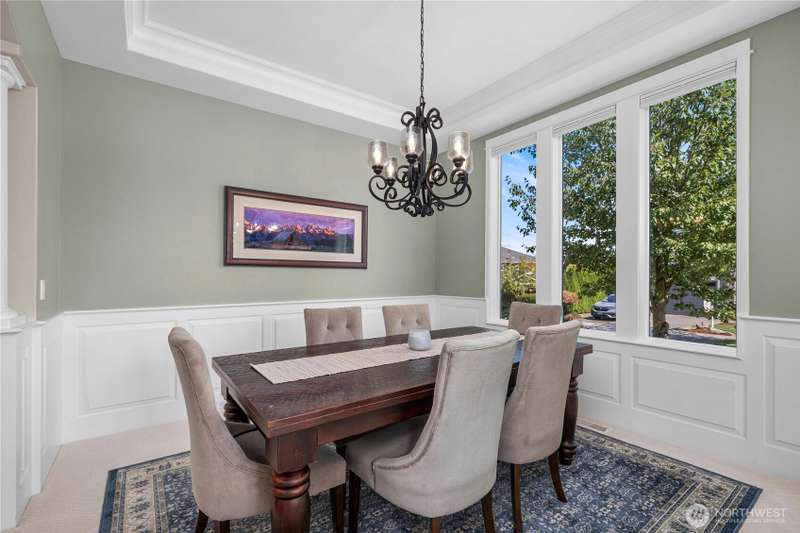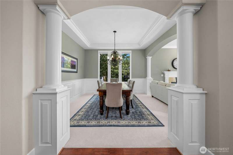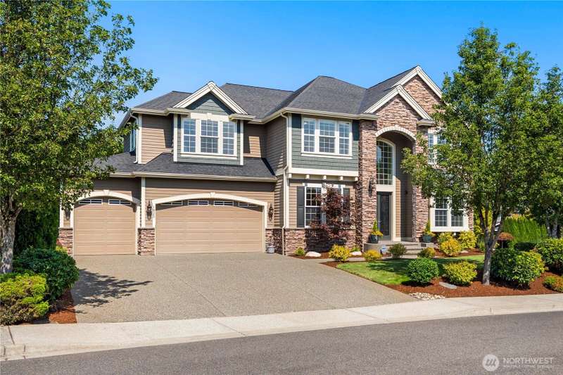 Welcome to Pinnacle Estates, where timeless craftsmanship meets modern living in this stunning Steve Jensen home w/ $100k update in past year. A dramatic 2-story rotunda foyer, hand-scraped hardwoods & custom millwork offer elegance & warmth. The gourmet kitchen featuring new quartzite counters, custom marble backsplash & premium appliances flows seamlessly into the inviting family room. Upstairs find 4 spacious bedrooms & bonus room w/ wet bar. Main floor bed/den & ¾ bath add flexibility. Retreat to the master suite w/ soaking tub & dual walk-in closets. Enjoy A/C, 3 fireplaces, covered patio & private backyard. Expansive windows frame mountain & territorial views. Rare 6-car garage, walkable to parks, trails, schools, shopping & transit.