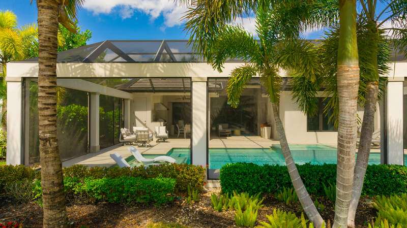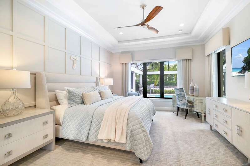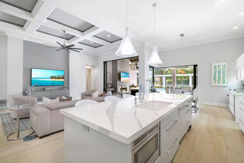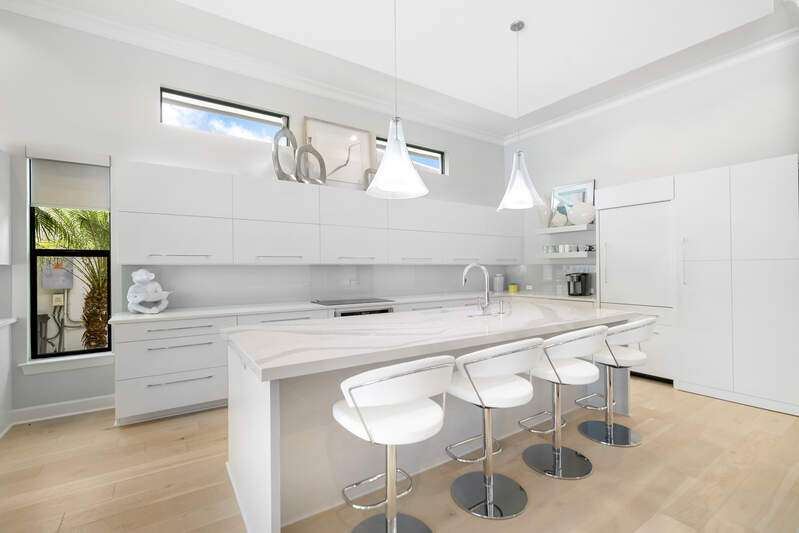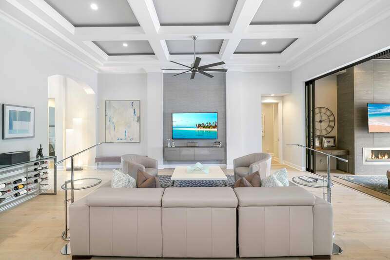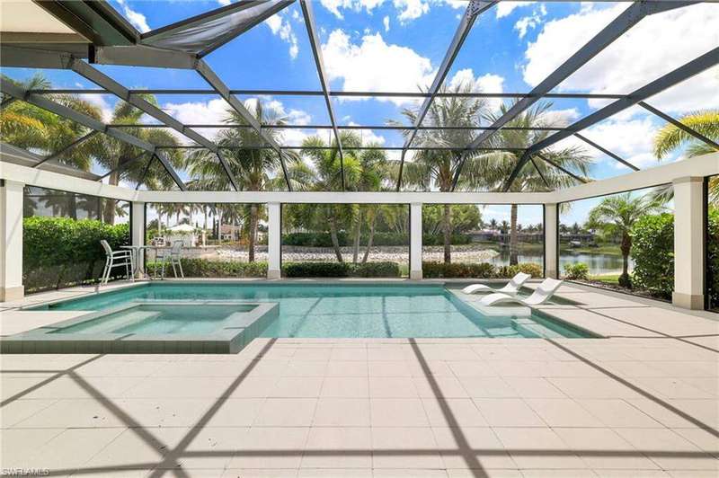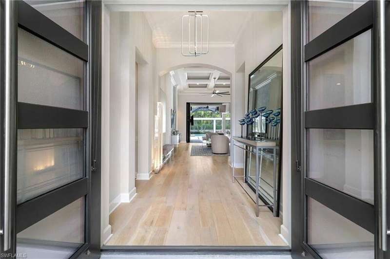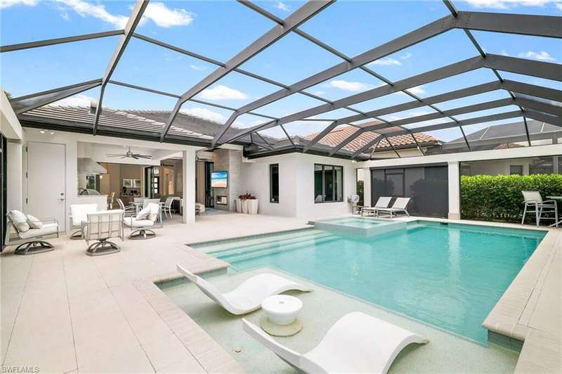 Welcome to this stunning modern residence nestled in an exclusive gated community of Miromar Lakes Beach and Golf Club, where elegance meets comfort. This meticulously designed home boasts of warm hardwood floors seamlessly throughout with open concept living spaces, creating a cozy yet contemporary atmosphere. This gourmet kitchen is a chef's dream, featuring top-of-the line appliances, sleek cabinetry, and large island perfect for entertaining. The spacious primary suite offers a private retreat with views of the water and a spa-inspired ensuite bathroom and generous walk-in closet space. Additional bedrooms are well appointed and ideal for guests or a growing family. Step outside to your own private oasis an expansive lanai perfect for relaxing or entertaining. With 24/7 security, lush landscaping and exclusive access to neighborhood amenities, this home offers the perfect blend of privacy, luxury, and convenience. Miromar features 700 acres of fresh-water lakes, with boating, fishing, swimming, water skiing, 3 miles of sand beaches, Caribbean style beach grill, club house, pool, full-service spa, fitness center, golf, tennis and many other luxurious amenities.