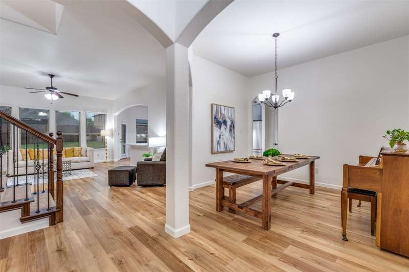 Welcome to this awesome home in Celina's super popular Heritage neighborhood! It's got everything you could want for comfortable living. No PID or MUD here.You're going to love cooking and hanging out in the kitchen it's been updated and looks fantastic! Think shiny quartz countertops, brand-new cabinets (some even light up!), and a huge island that's perfect for casual meals or getting together with friends. The eat-in kitchen area is super cozy for everyday meals, and everything flows so well.This 1.5-story home is seriously flexible and has tons of space. You get four bedrooms on the main floor, which is super convenient. Upstairs, there's a bonus flex room that could be a fifth bedroom, a media room, a playroom whatever you need! And it even has its own full bathroom, which is great for guests or older kids.The primary bedroom is generous and private from rest of the bedrooms. The bathroom has a double sink, a big garden tub for soaking, and a separate, spacious shower. And you'll have a walk-in closet.Outside, the backyard is totally private thanks to the newly stained fence. The covered patio is the perfect spot for dinner outside, morning coffee, or just relaxing, no matter the weather.The Heritage neighborhood itself is amazing! You can enjoy miles of walking and biking trails, lots of playgrounds for the kids, a sparkling swimming pool, and even a peaceful catch-and-release pond. There's so much to do here! And a big plus this home is zoned for the highly-rated Celina Independent School District. This place truly offers a great combo of stylish living and a friendly community vibe.