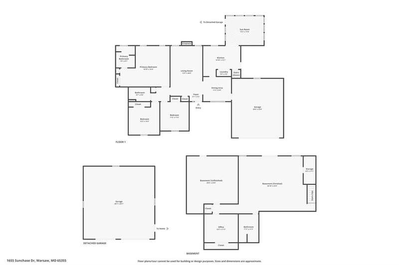 Beautiful Brick Ranch with finished Walk-Out Basement on 1.37 of an Acre in Quiet Subdivision that backs to the woods. Welcome to this meticulously maintained 3-bedroom, 3-bath brick ranch nestled on a spacious 1.37 acre lot in a peaceful and well-kept subdivision. This home has a great sunroom that overlooks the back yard and the woods where you can watch all the beauty of nature. This home has both comfort and functionality in mind, it offers a finished walk-out basement with huge recreation room, a non-conforming bedroom/office, and a workshop area. Making this basement perfect for entertaining, additional living space, or hosting guests.The main level features an open and inviting floor plan with vaulted ceiling and generous living areas, a bright kitchen, and a seamless flow into the dining space. The primary suite includes vaulted ceilings, a private bath and plenty of closet space, while two additional bedrooms and baths provide plenty of room for family or visitors.Enjoy the ease of a maintenance-free exterior, complemented by both an attached two-car garage and a detached two-car garage and work area, ideal for extra storage, hobbies, or a workshop.Step outside to take in the quiet, country-like setting, all within the comforts of a desirable subdivision. This property truly combines peaceful living with practical amenities, making it a standout opportunity.