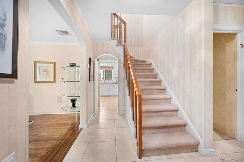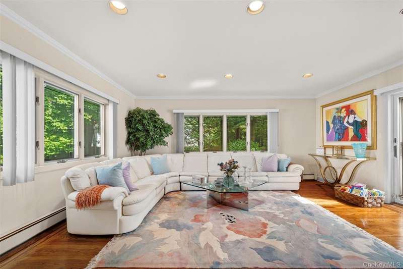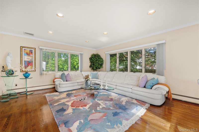 Fabulous Saddle Rock Estates Brick Colonial! Magnificently renovated and meticulously maintained, this 5-bedroom, 3-bath home offers spacious living throughout. Features include a large living room with a wood-burning fireplace, a formal dining room opening to an expanded family room with Trex deck access, and a first-floor bedroom/office with a full bath. The gourmet granite kitchen boasts a breakfast room, double ovens, a warming drawer, and high-end appliances. Upstairs, find 4 generous bedrooms, a sitting area, and 2 full baths. The finished, waterproofed basement includes abundant storage, laundry, and an extra refrigerator. Special features: hardwood floors, alarm system, 2-zone central air, full-house generator, 2 zone gas & 3 zone oil heat, new windows, outdoor storage, and Trex deck and Ring Cameras. Located in the Great Neck Park District near schools and houses of worship. Zoned for Saddle Rock Elementary, North Middle, and North High School.