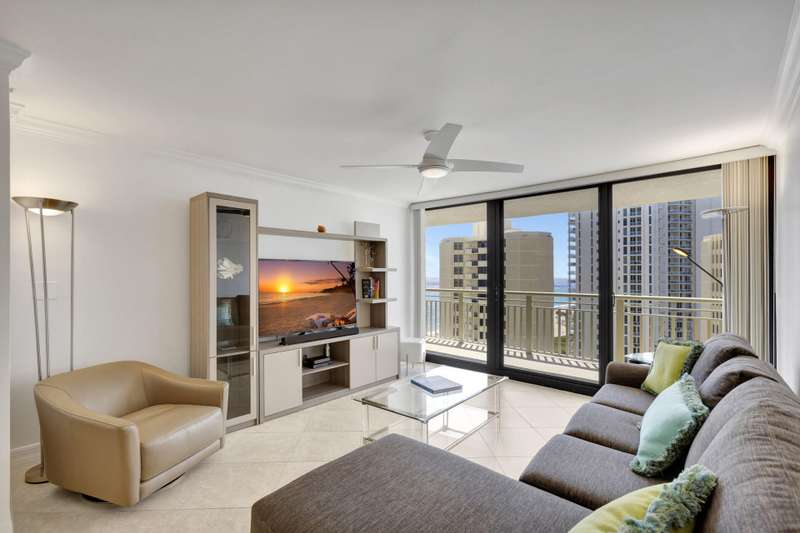 Welcome to your Singer Island oasis! 1 Bd 1.5 Ba offering the perfect blend of elegance and relaxation. Stunning ocean and intracoastal views, enhanced by a light, bright southern exposure. Tiled throughout, the space provides a clean, seamless look. Freshly painted, 3 new fans & garbage disposal. Tiara is an amenity-rich resort-like lifestyle, complete with valet, 24/7 concierge & secure entry. Residents have access to a heated pool, jacuzzi, tennis & pickleball courts, fitness centers with steam rooms & saunas, a billiard room, library & card room. On-site dining at the 43rd-floor Marquis Lounge offering a 360-degree vista or at the poolside Gazebo. Premier shopping, dining & entertainment are just 15 mins away. 25 mins to PBI airport.