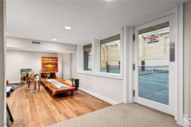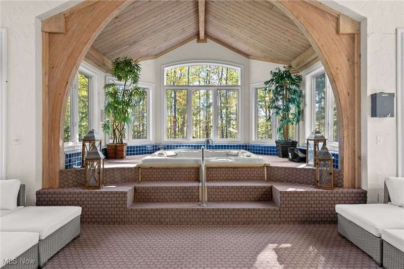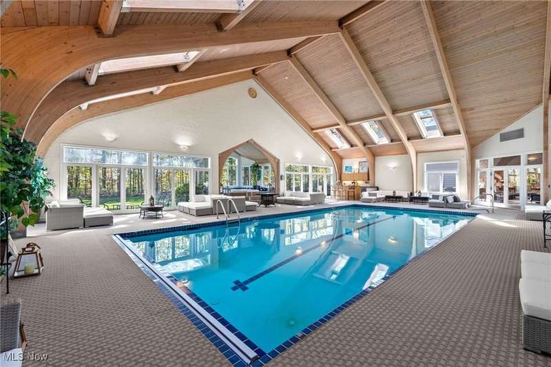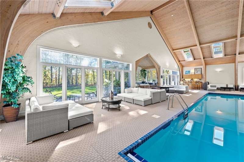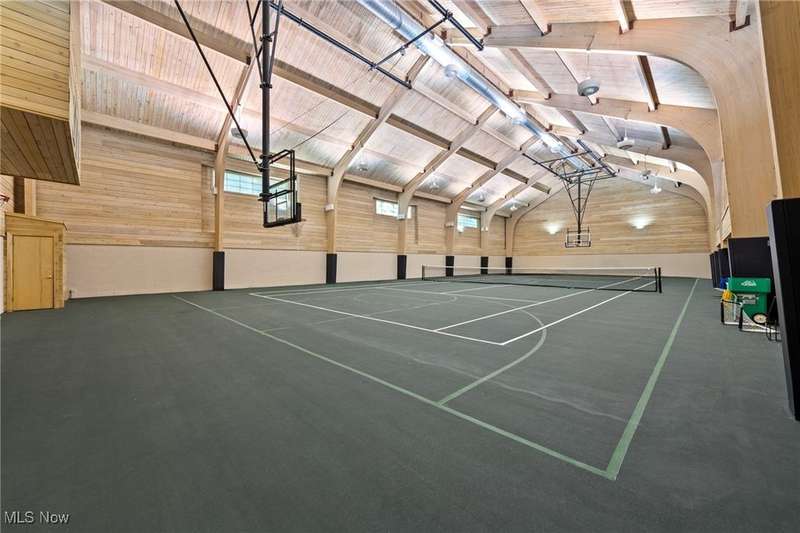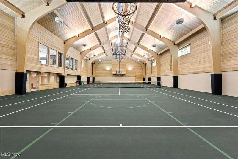 You can feel like you're on vacation 365 days a year in this one of a kind home which was designed for the recreational sports lover! Sited on the most breathtaking wooded lot with a fabulous pond in the front yard, this unique structure is designed for grand scale entertaining and exercising! What makes this special is the one of a kind attached indoor pool complex and the fabulous indoor tennis court/basketball court (and pickleball too!). The living areas in this home are incredible featuring an open floor plan highlighted by a truly spectacular great room area which overlooks both the pool and tennis court. Open to the great room is the fabulous kitchen and dining room area. Here you can entertain in style and ease! There are two huge bedroom suites both with private bathrooms. There is even a finished lower level with additional entertaining and living space. Here you can have a family room, exercise room, hobby room, and more! The unique structure has a 3+ car attached garage, first floor laundry room, and incredible storage throughout. Surrounding the pool area is additional entertainment space, a glass walled hot tub, and a fabulous built-in wet bar area. There is even an additional full bathroom with a gym sized sauna. Summers will be enjoyed on the fabulous outdoor patio area which overlooks a wooded wonderland. Truly a one-of-a-kind property!!