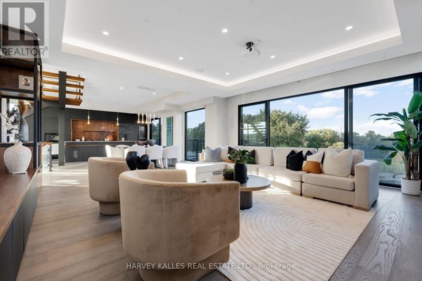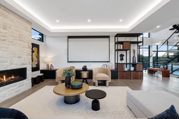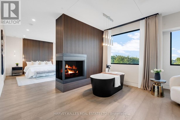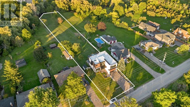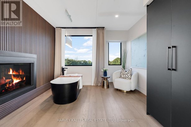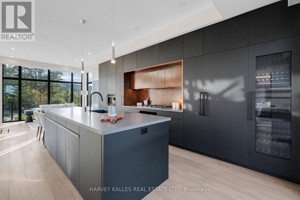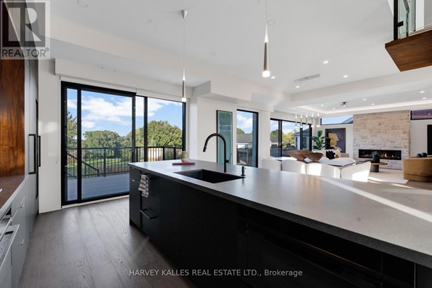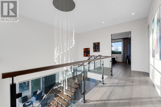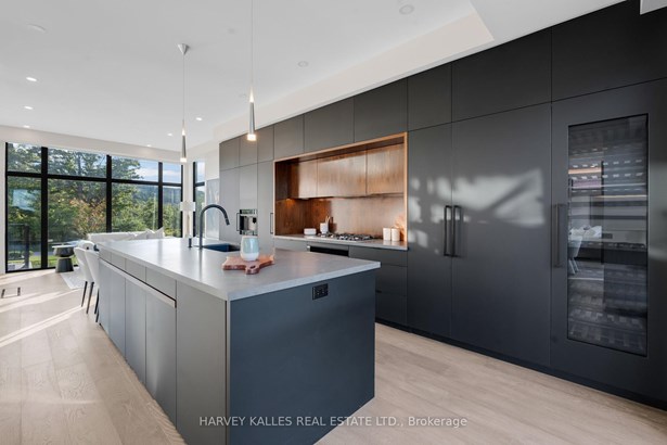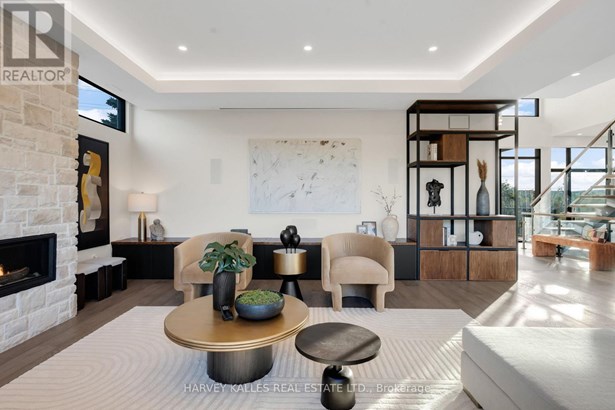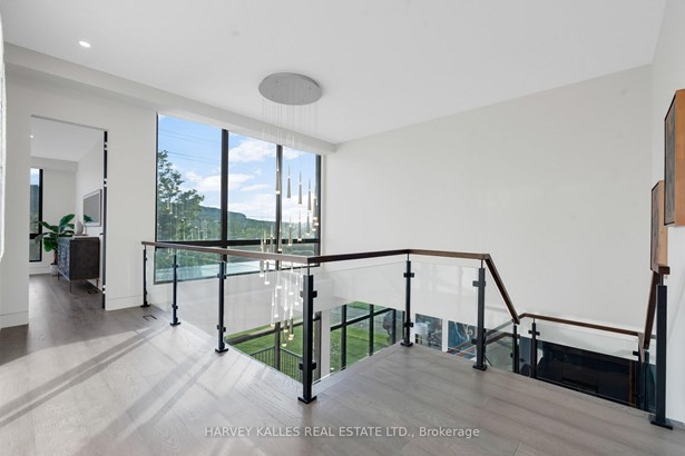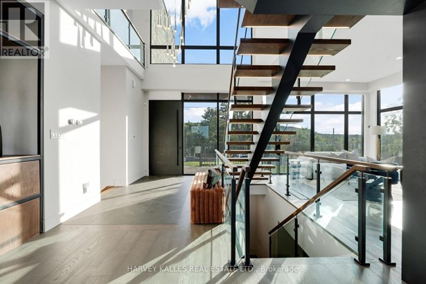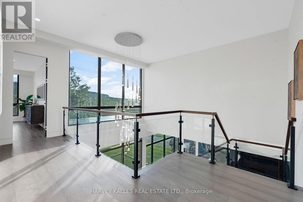 Directly across from the cliff-face of the Niagara Escarpment, in one of Milton's most serene and private settings, sits a newly built contemporary masterpiece designed by award-winning Sensus Design Studio. Resting on a remarkable 60 x 520+ lot backing onto 16 Mile Creek, this home offers a rare blend of modern architecture and countryside tranquility. With no neighbours in front or behind, walls of windows immerse you in nature, while the expansive backyard invites year-round enjoyment whether relaxing in the hot tub, recovering in the cold plunge, gathering around the fire pit, fishing, tobogganing, or even practicing your short game of golf! Inside, 21 ceilings and a floating staircase set a dramatic tone. A formal living room frames escarpment sunsets, while the sleek custom kitchen features high-end Fisher & Paykel appliances. The family room, anchored by a soaring stone fireplace, doubles as a home theatre with built-in projector and surround sound. The primary suite rivals a five-star retreat: a lounge with soaker tub overlooking the backyard, a double-sided fireplace, king-size sleeping area with custom headboard, walk-through closet, and spa-like ensuite. Two additional king-sized bedrooms each feature walk-in closets and lavish ensuites with wet rooms. Smart home features include lighting automation, landscape and irrigation systems, EV charger, and more. A perfect fusion of luxury design and natural beauty, this home is truly one-of-a-kind and must be experienced in person.